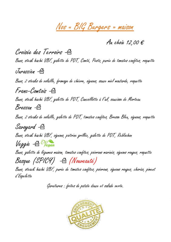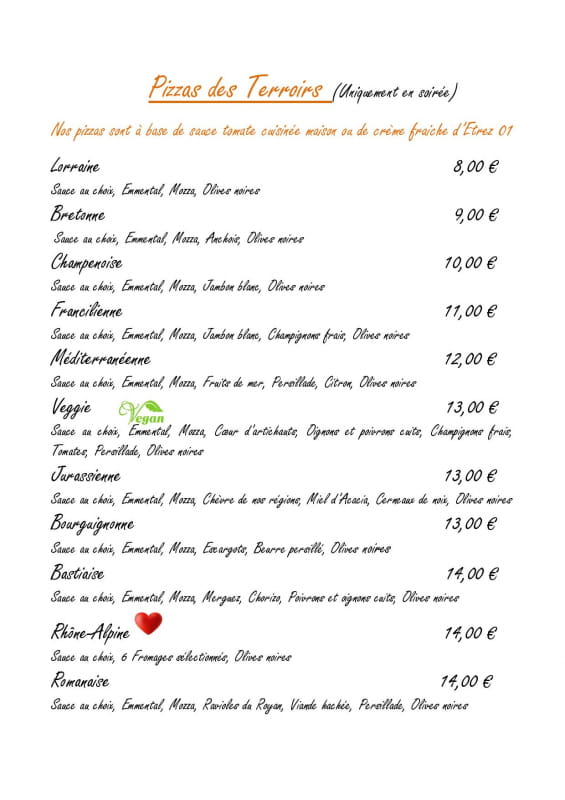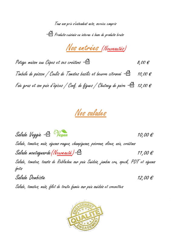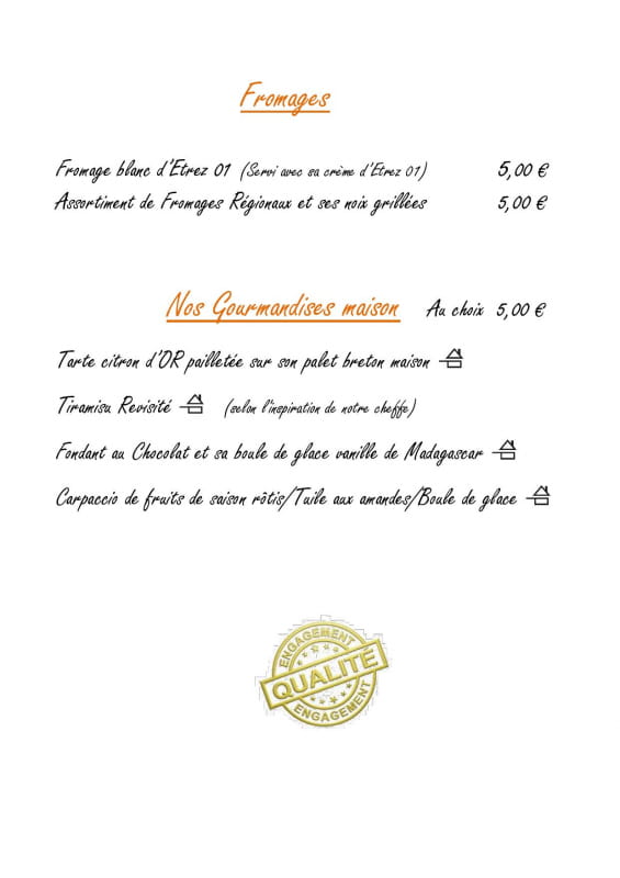 Tarieven :- Menu voor volwassenen : Compris entre 8€ et 25€