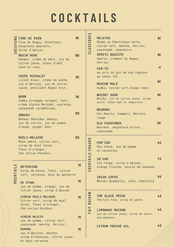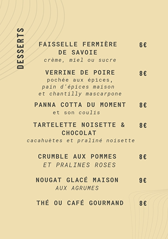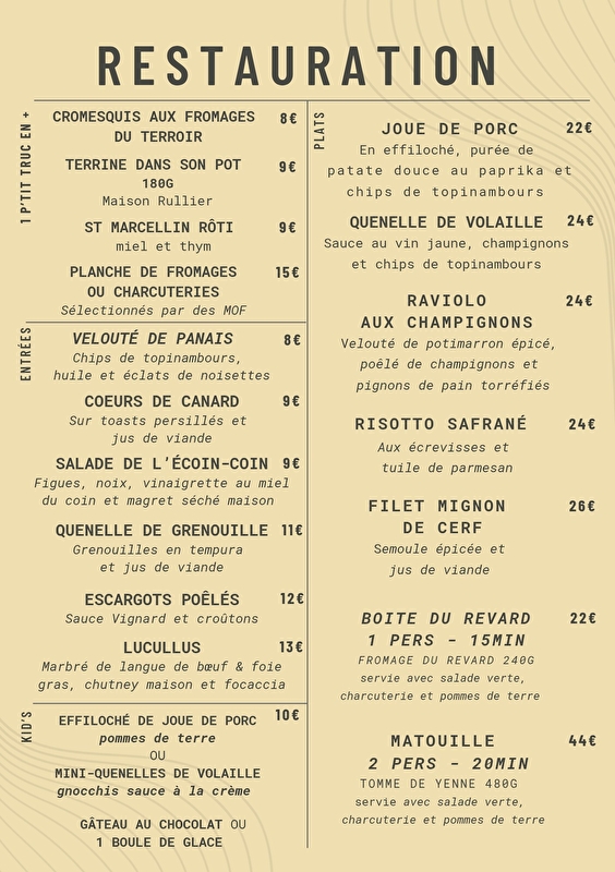 Tarieven :- Menu voor volwassenen : Compris entre 7.5€ et 30€