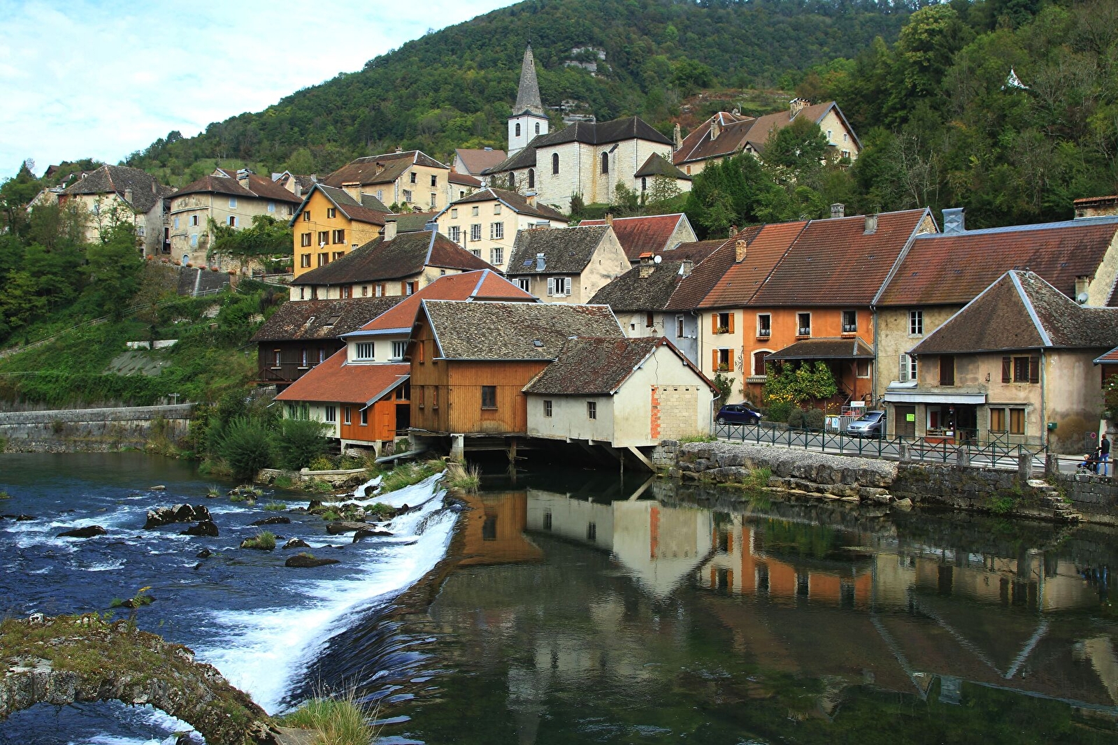 Zodra je aankomt, bewonder je het unieke panorama van Lods: de rivier de Loue beneden je, de overblijfselen van de oude brug en de huizen van de wijnboeren op de heuvels. Je gids vertelt je alles over de geschiedenis en architectuur van dit kleine stadje met karakter uit de Franche-Comté.