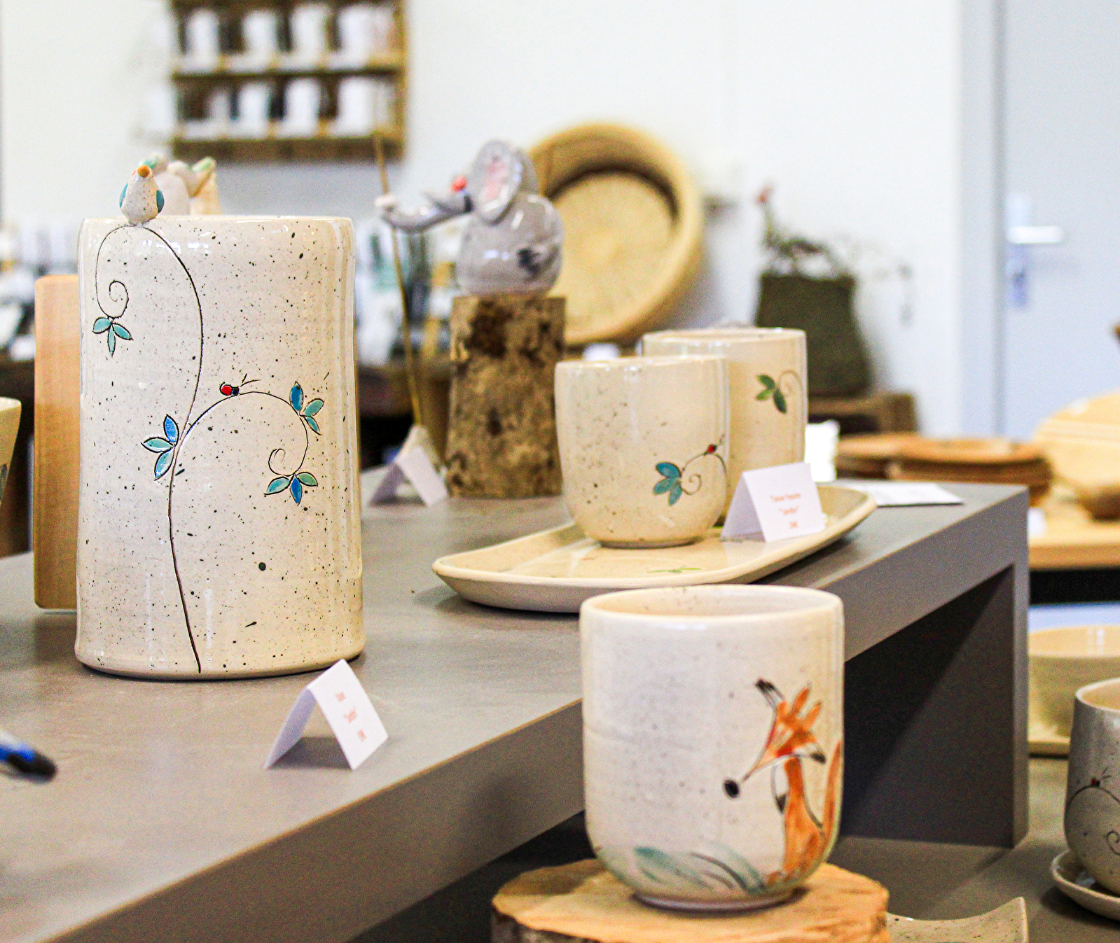 U vindt er producten van bijna 40 ambachtslieden uit de Franche-Comté of kleine plaatselijke bedrijven, op het gebied van serviesgoed, decoratie, textiel, sieraden, speelgoed, enz.