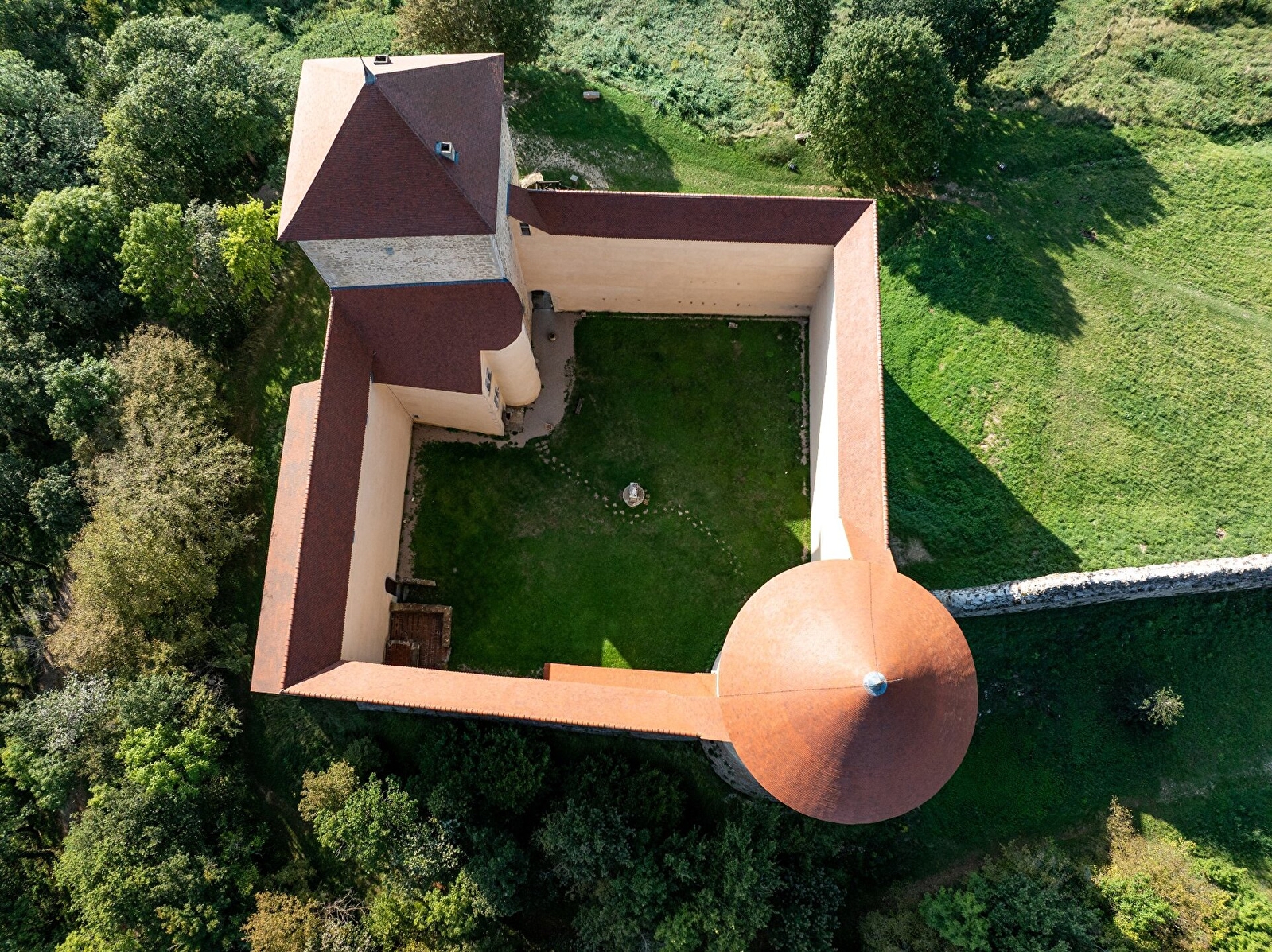 Het kasteel van Allymes bestaat uit twee delen, de hoge binnenplaats die wordt gevormd door de vier gordijnmuren die de vierkante toren (donjon) verbinden met de ronde toren (wachttoren) en de lage binnenplaats waarvan de grote vestingmuur en een kleine wachttoren in ruïnes zijn overgebleven. Het kasteel van Allymes, dat in 1960 als historisch monument werd geklasseerd, werd van de ondergang gered en in 1966 voor het publiek opengesteld.