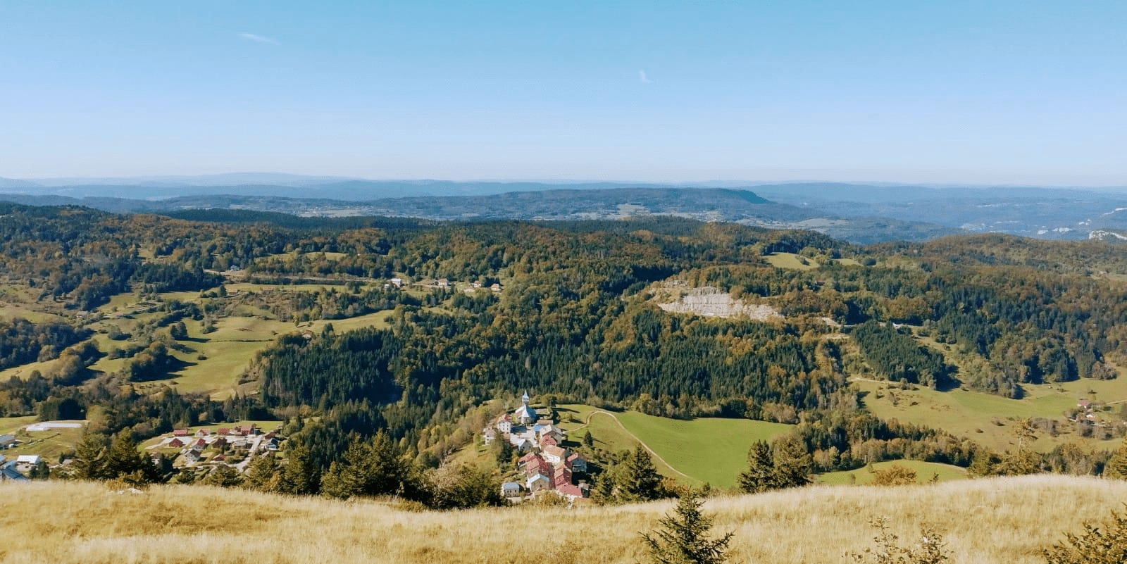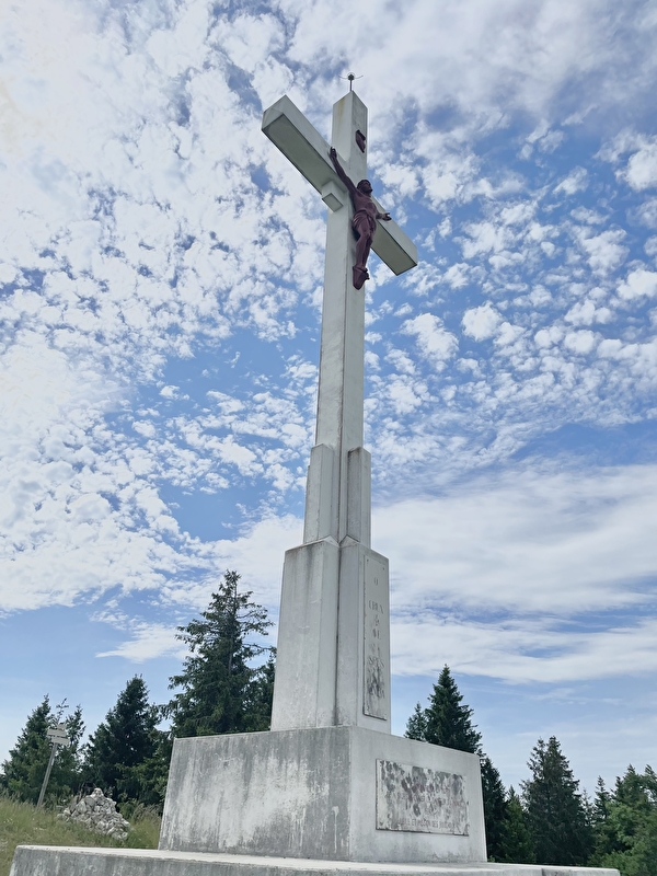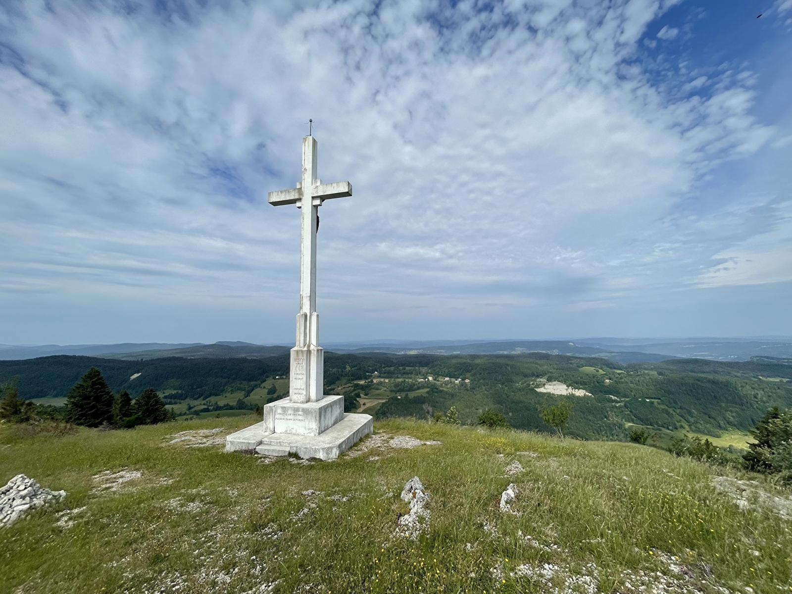 Dit imposante kruis, dat 1225 m hoog is, werd opgericht in 1934. Voor sommigen is het een symbolische link tussen de gemeenten La Pesse en Les Bouchoux, die tot 1832 één waren. Op de top wacht je een ongelooflijk uitzicht. In het westen, Les Bouchoux en een uitzicht dat verder reikt dan de tussenplateaus van de Jura; in het zuiden, de Haut-Bugey en in het oosten, het dorp La Pesse, de Crêt de Chalam en de Monts Jura. Een uitnodiging voor een zintuiglijke reis door de hoge vallei van Tacon, waar alles draait om geluid, landschap en licht!
