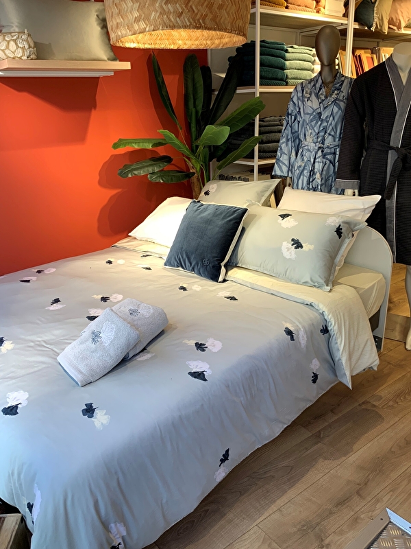 Sylvie en haar nieuwe team heten je van harte welkom in hun Olivier Desforges boetiek. Dit bekende merk van topkwaliteit huishoudlinnen brengt een resoluut stijlvolle sfeer in je slaapkamer en badkamer, met een assortiment dat zowel geraffineerd als modern is. Hugo Boss ruimte voor huishoudlinnen.