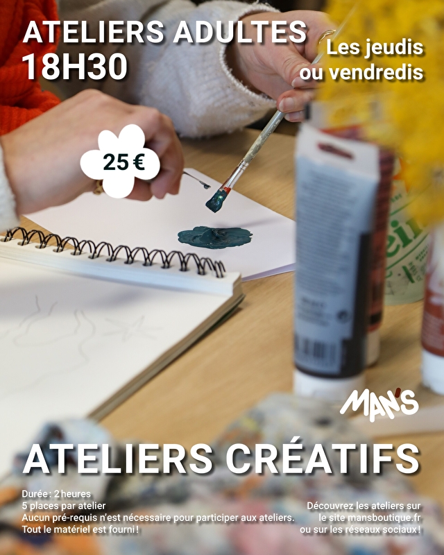 Twee keer per maand biedt Manon, grafisch ontwerper, illustrator en winkelmanager, ook creatieve workshops voor volwassenen, met veel plezier en samen delen!