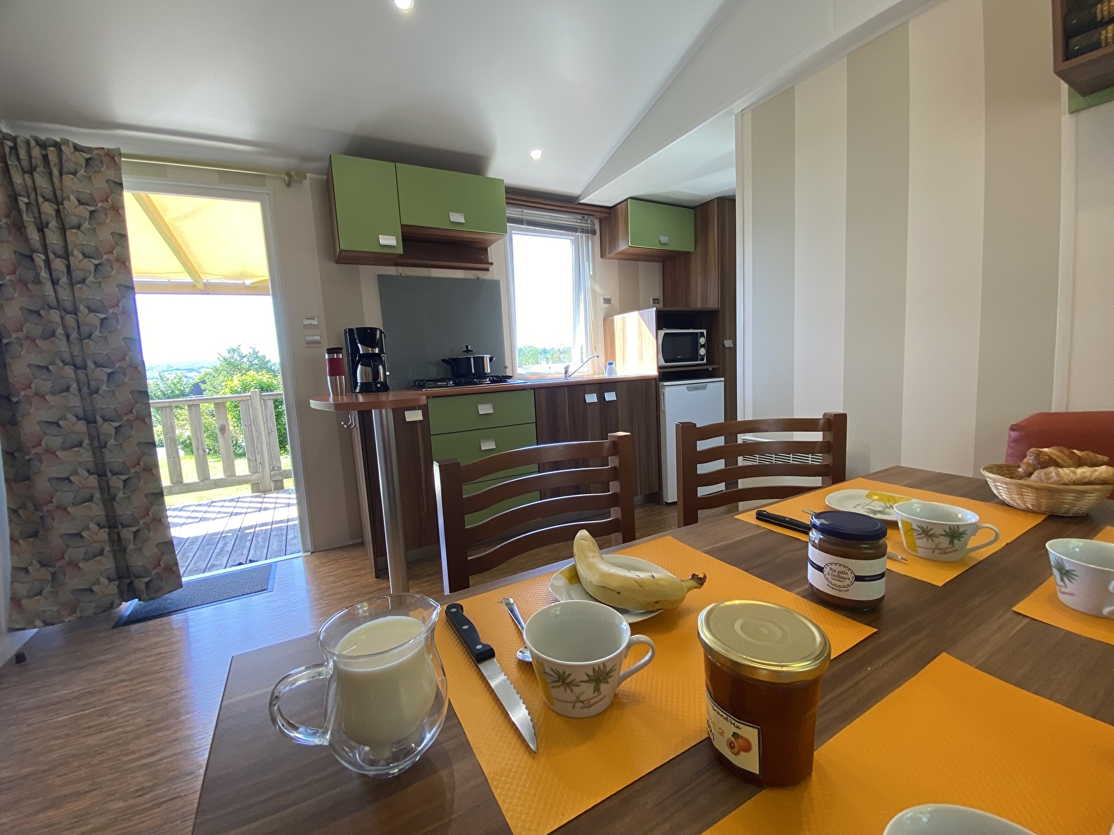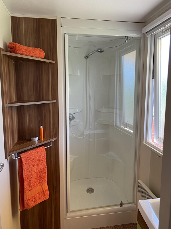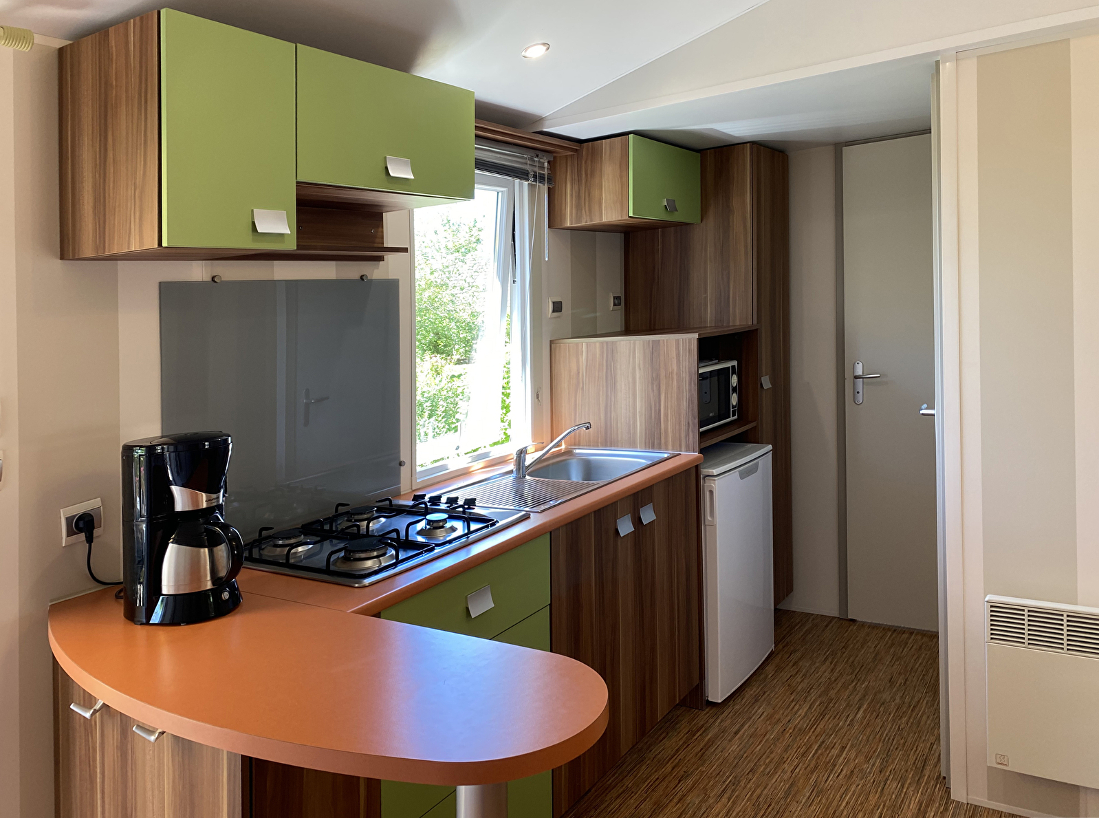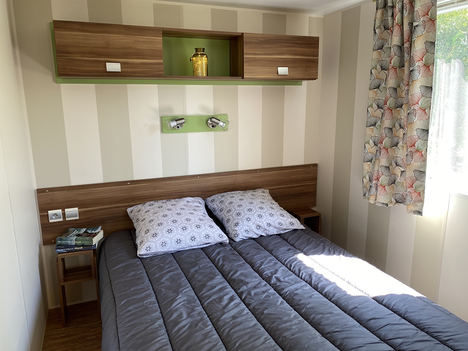 Houten stacaravan voor buiten. IRM Super Mercure model, twee slaapkamers, aparte wc, versterkte isolatie en verwarming. Volledig uitgerust, magnetron, gasfornuis, koelkast. Terras 15m2. Wifi beschikbaar. Reservering voor het weekend of per week.