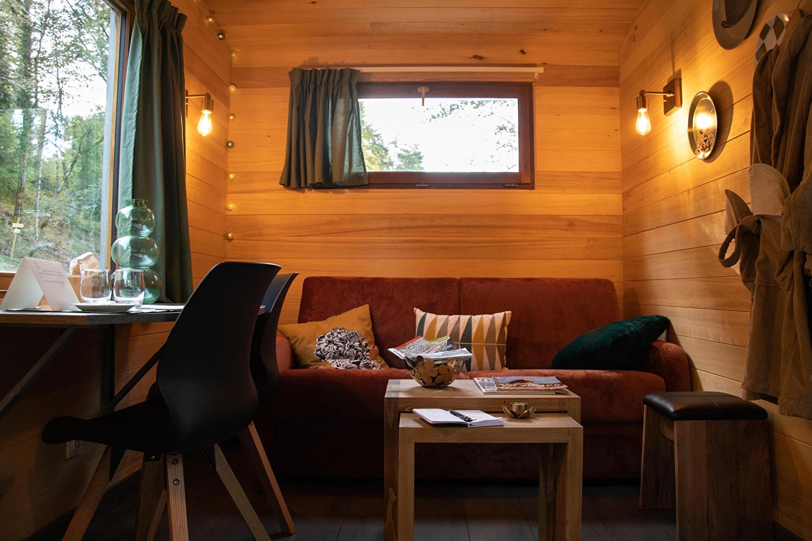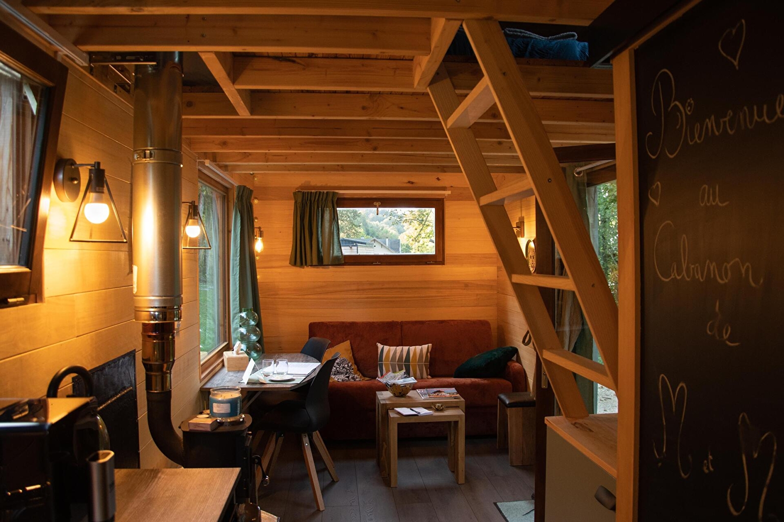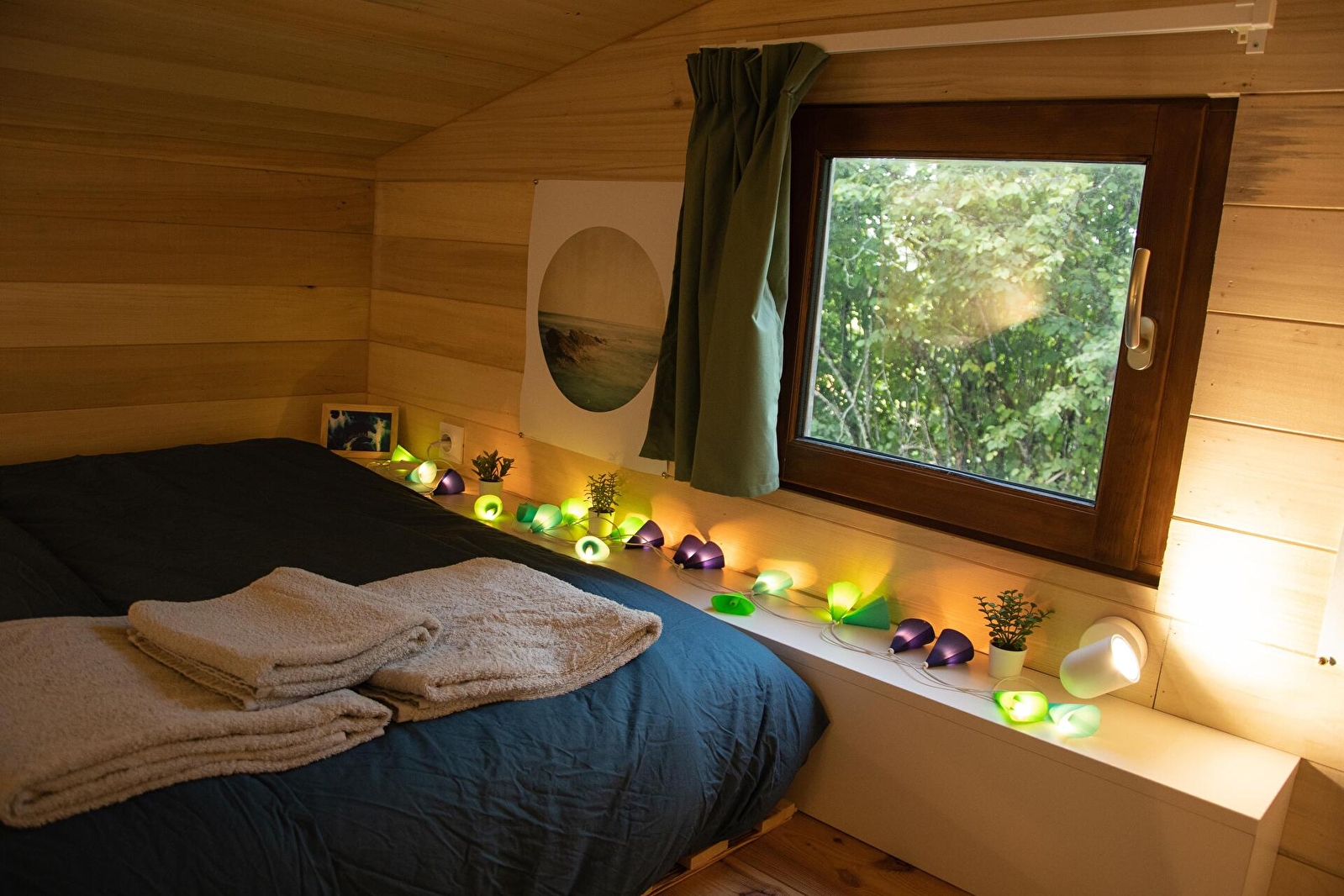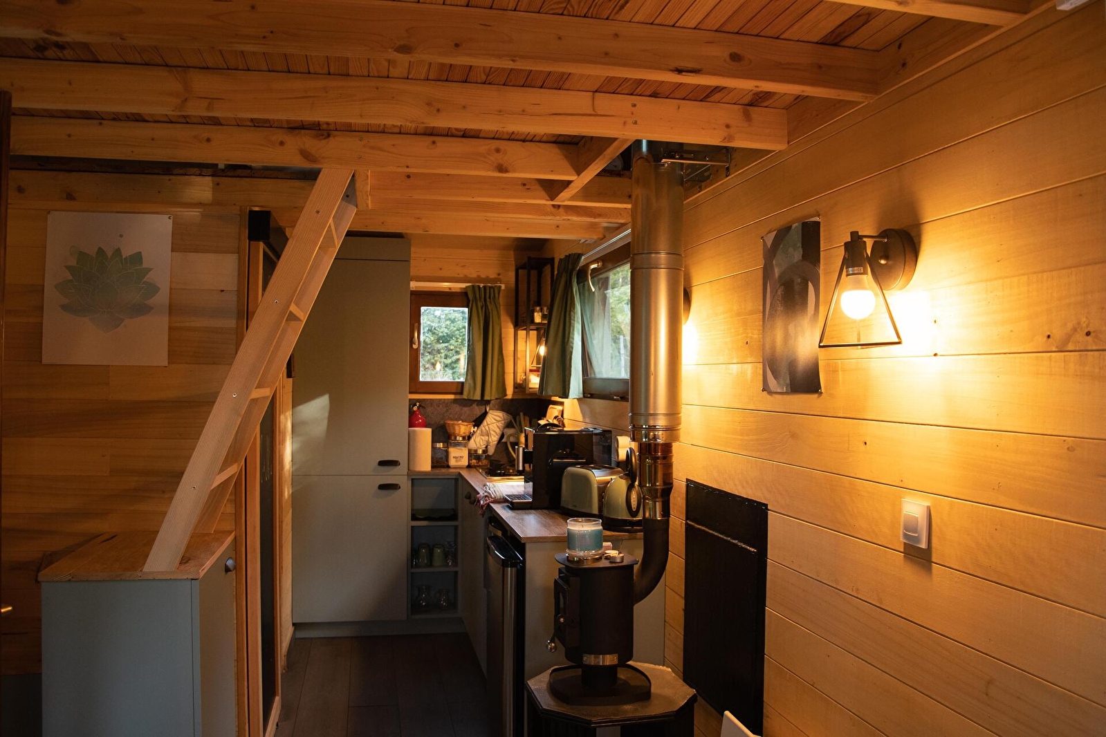 Neem de "Petit Chemin des tinys" en je vindt ons knusse, romantische piepkleine huisje onderaan de tuin! Drie treden en een trapje brengen je naar je slaapkamer op de tussenverdieping, waar een dekbed en donzige kussens op je wachten! Dan, bij de kachel in de kleine zitkamer, kun je genieten van een tijdloos moment: lezen, schrijven, tekenen, of gewoon mediteren terwijl je uit het raam naar de prachtige cederboom kijkt op het geluid van het knapperende vuur. En voor de zoetekauwen is het in deze bosrijke sfeer, in de kleine eethoek, dat je kunt genieten van een lekkere kop warme chocolademelk met extra slagroom of een fondue! Zoals je hebt begrepen, is dit piepkleine hoekje van het paradijs... Lang leve het geluk!