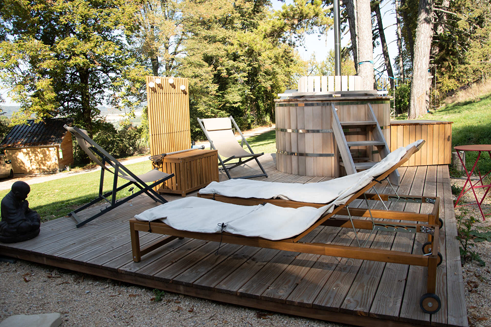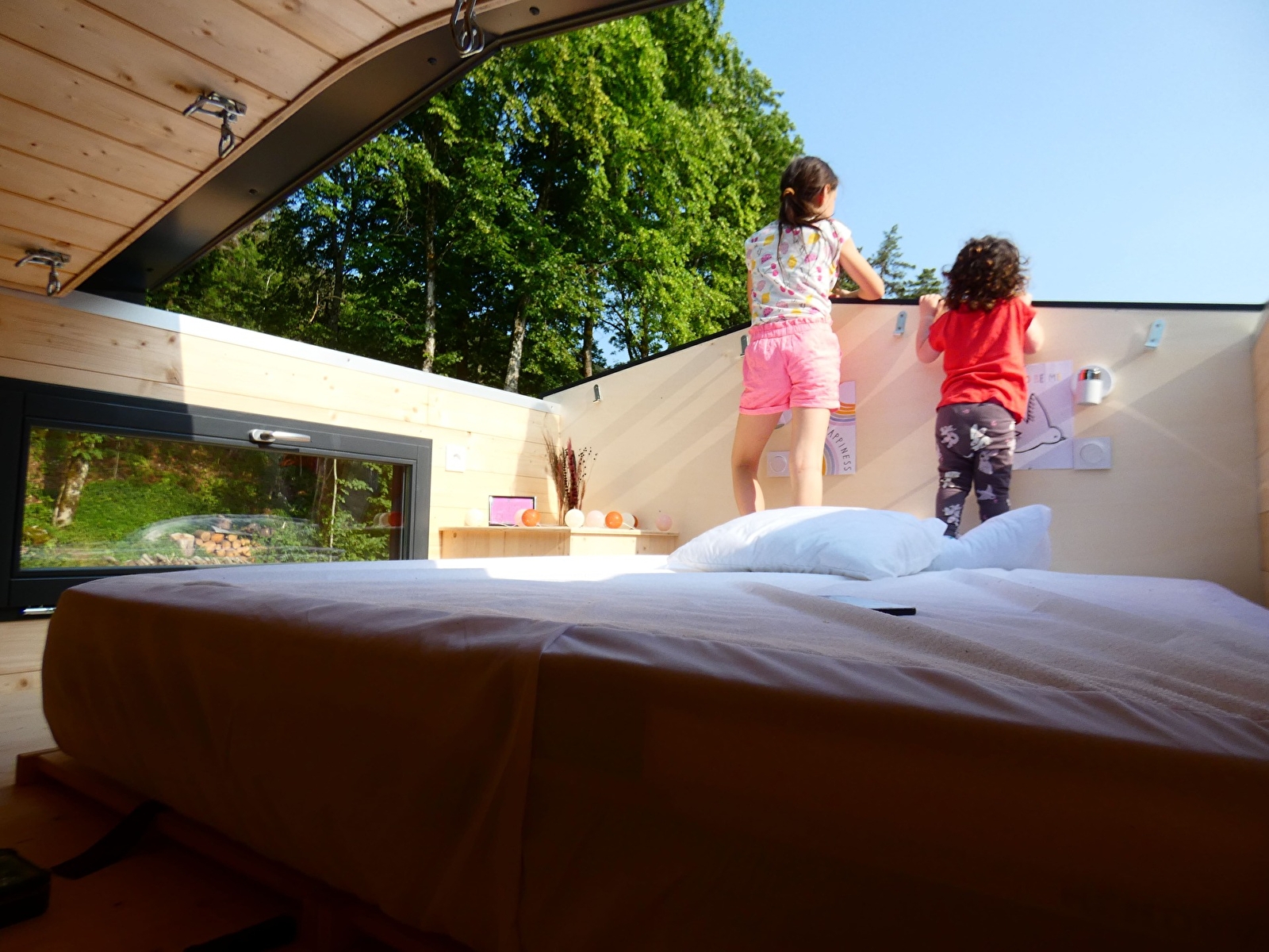 Neem de "Petit Chemin des tinys" en raak in de ban van deze eerste tiny die zowel voor stammen als voor vrienden of geliefden is ontworpen! Na een dag in de frisse lucht van het Plateau d'Hauteville, tussen de bomen of in het moeras, kunnen de kinderen zich verstoppen, spelen of verhalen vertellen op de lage tussenverdieping! Terwijl sommigen van een goed digestief nippen op de middelste tussenverdieping, staren anderen naar de hemel in de slaapkamer met open dak met uitzicht op de sterren! Zoals je kunt zien, zal dit veelzijdige piepkleine naar ieders smaak zijn, en als het weer het toelaat, kun je een wens doen vanuit je bed, onder de vallende sterren... Lang leve de magie!