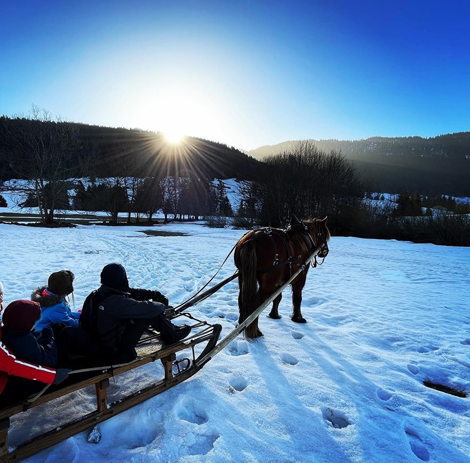 Sneeuwraketten, snowshoes, paardenbespanning, Tocht met dieren, Wandeltochten, Trail, Paardentochten