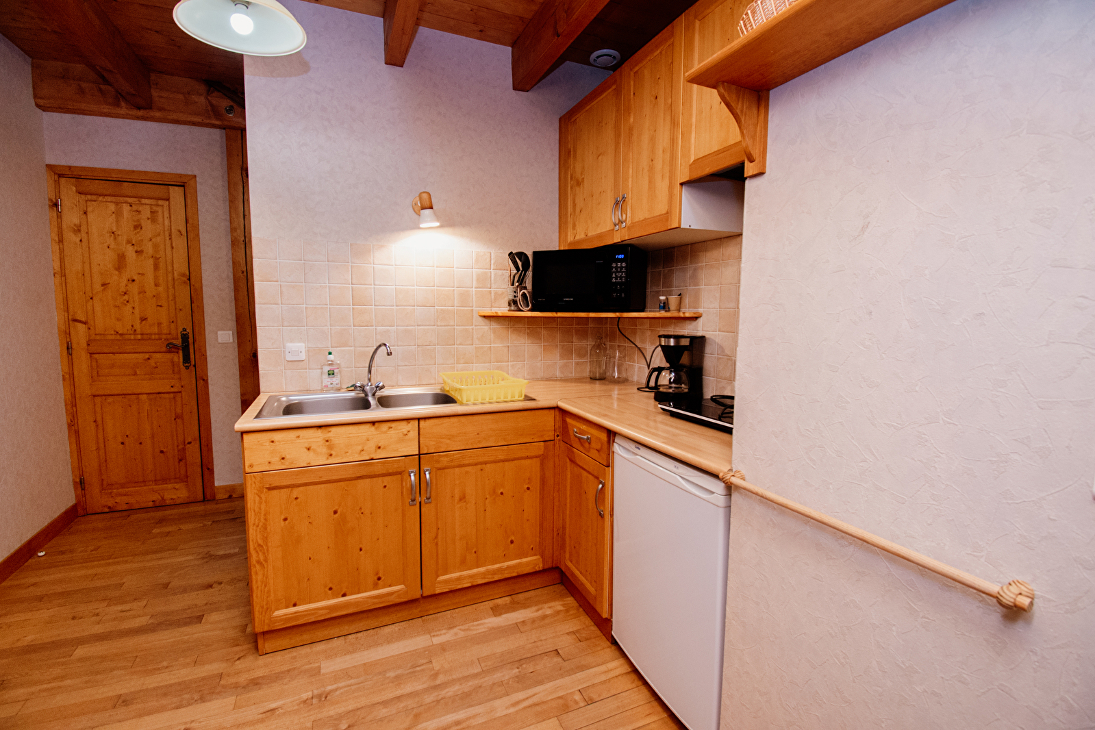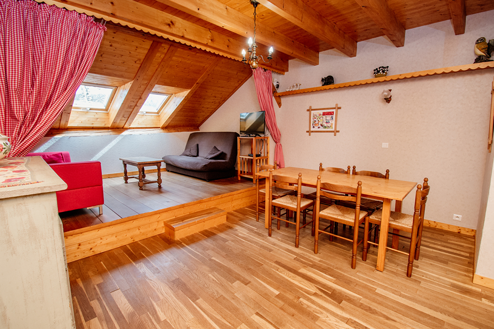 Het is verlicht door drie velux ramen en de toegang tot de tuin is via de gemeenschappelijke hal. Buiten is er een picknicktafel gereserveerd voor dit appartement. Ligstoelen, barbecue en parasol zijn ook beschikbaar.