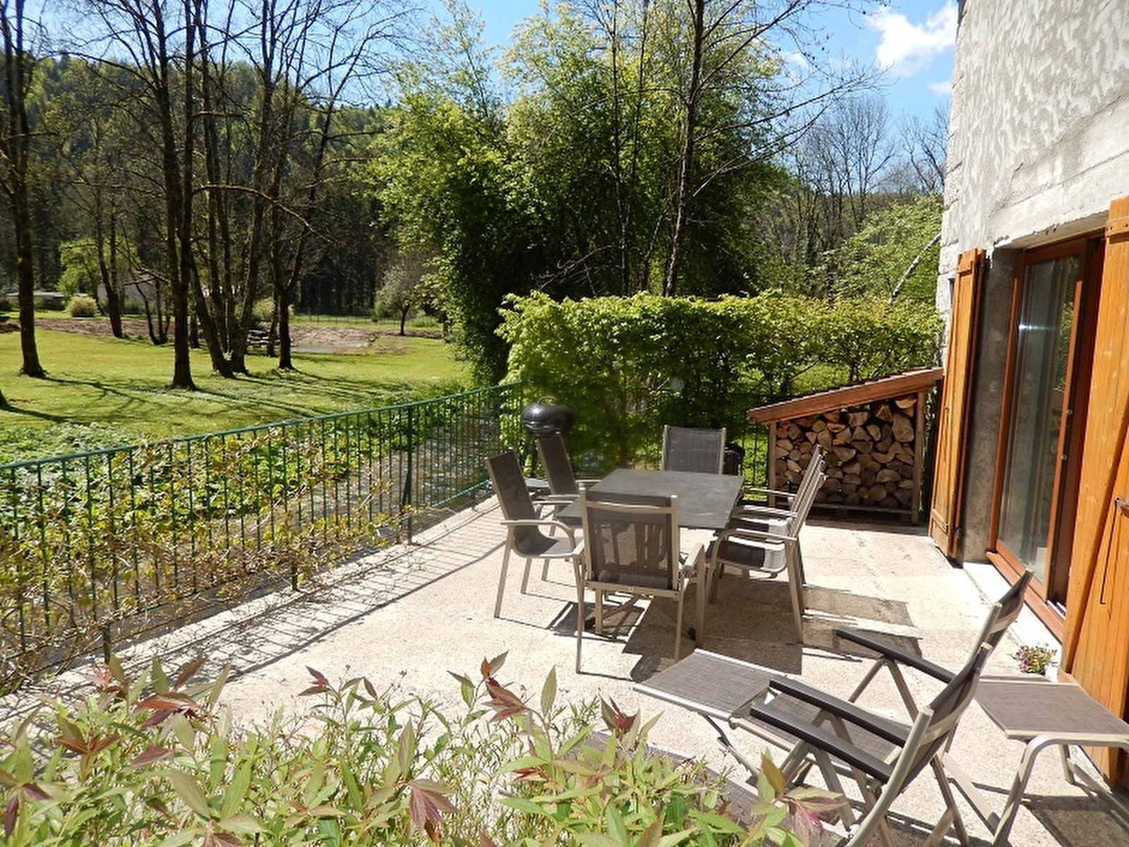 Begane grond: keuken-woonkamer, aparte woonkamer (DVD-speler), boven slaapkamer 1: 1 tweepersoonsbed (160x200), slaapkamer 2: 2 eenpersoonsbedden, slaapkamer 3: 1 tweepersoonsbed (160x200), badkamer met douche en sauna. Centrale en elektrische verwarming, groot terras aan de rivier. Beddengoed en hout aanwezig, internetverbinding. Niet-roken gîte. Kinderbed beschikbaar (zonder lakens).
