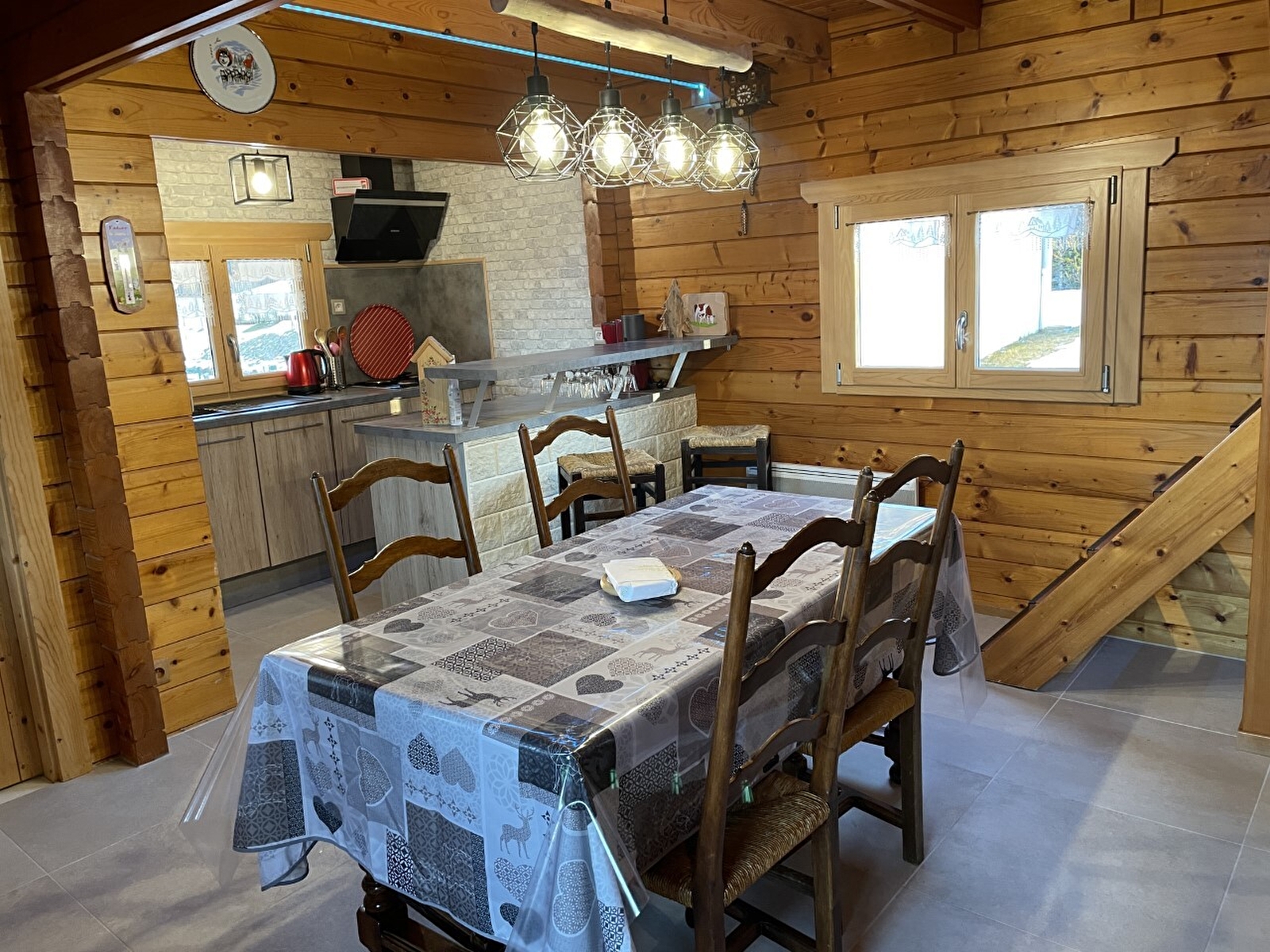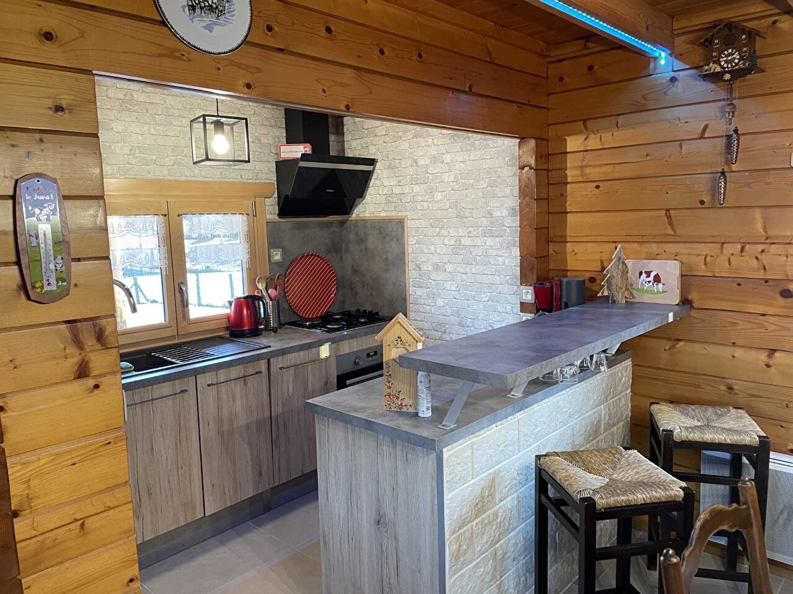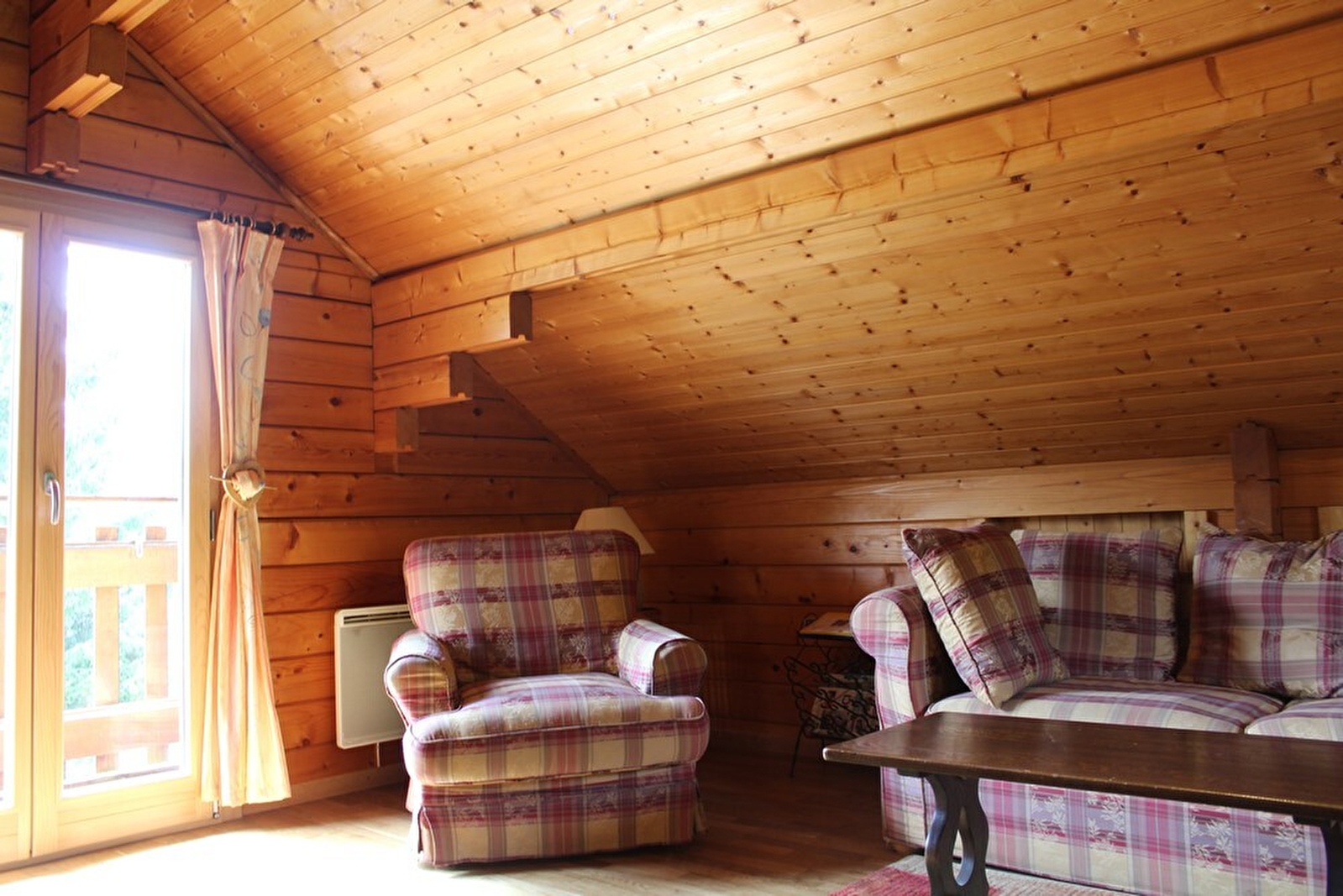 Warm en vriendelijk houten chalet in een rustige omgeving. Begane grond: open keuken naar de woonkamer, slaapkamer 1: 1 tweepersoonsbed, slaapkamer 2: 1 tweepersoonsbed, badkamer met WC en douche. Boven: woonkamer met mezzanine + 2 slaapruimtes (1 eenpersoonsbed + 1 tweepersoonsbed), klein balkon. Aangrenzende omheinde tuin, berging voor ski's en fietsen, tuinmeubels, barbecue. Ideaal voor natuurliefhebbers en vissers: rivieren van 1ste categorie (forel) op 500 m van de gîte. Toeristische attracties: Gorges de la Langouette, cascade de la Billaude, Gorges, chutes et pertes de l'Ain - een must!