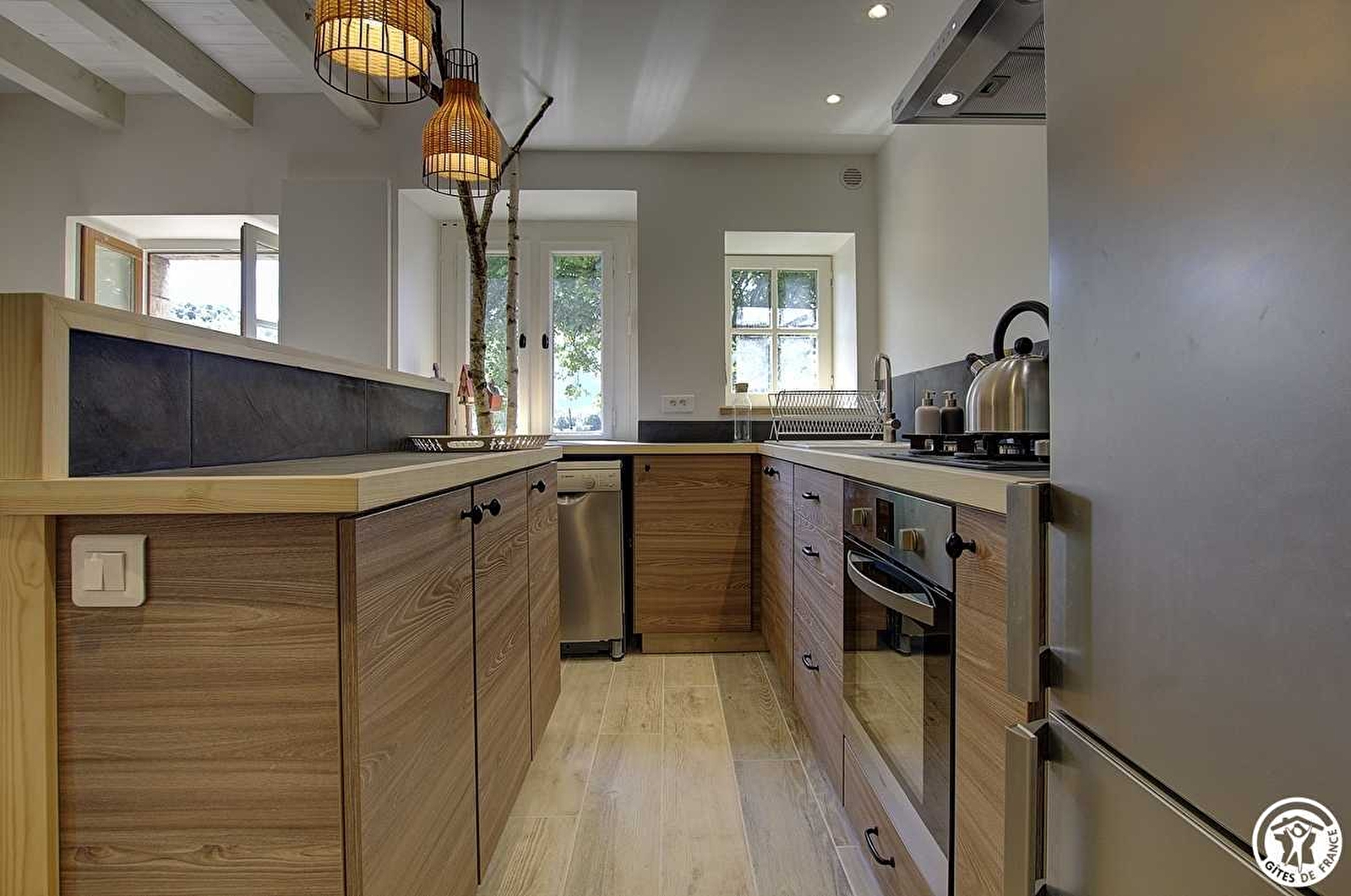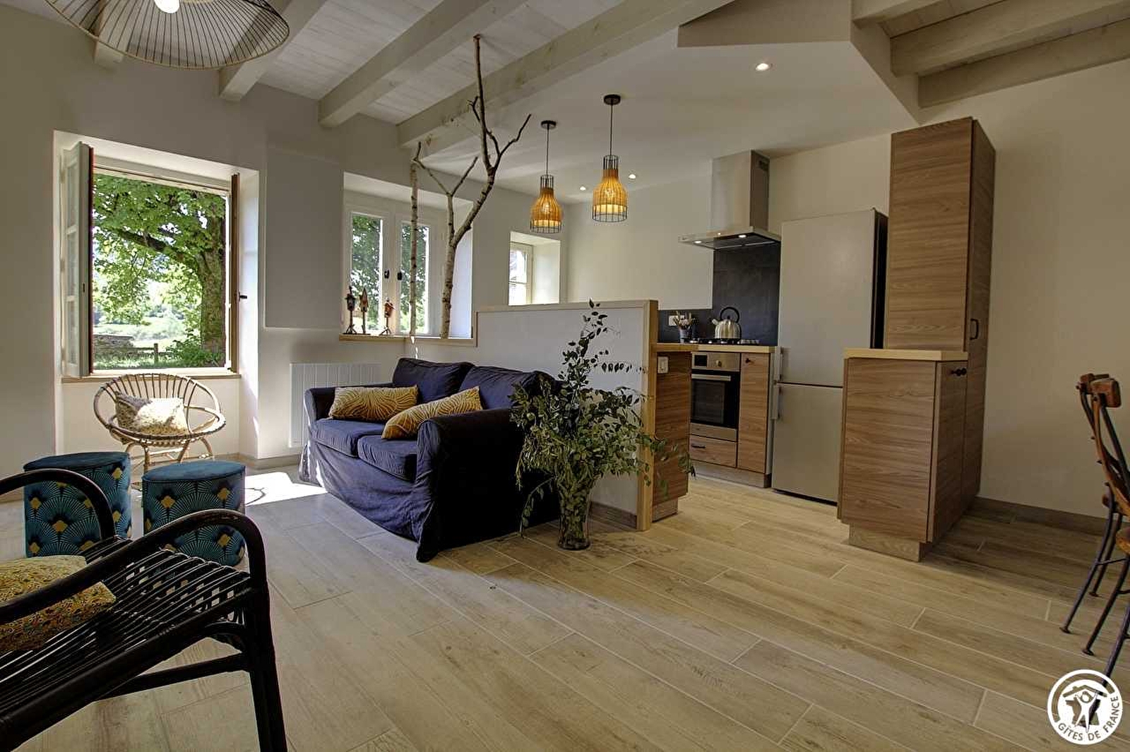 Aan de ingang van het gehucht Le Crozet, is de gîte "Au Tilleul" volledig gerenoveerd in een oude boerderij, om je kwaliteitsaccommodatie te bieden met een harmonieuze mix van planten, hout en metaal. Je komt het eigendom binnen via de binnenplaats en de privétuin van de gîte, en vervolgens op een overdekt terras. De hoofdingang grenst aan een schuur en geeft uit op een grote woonkamer met een ingerichte keuken die uitkomt op de woonkamer. Een trap leidt naar boven naar een overloop met een studieruimte, die uitkomt op twee slaapkamers, een met een tweepersoonsbed (140*200) en een tweede slaapkamer met een tweepersoonsbed (140*200) en een eenpersoonsbed (90*190). Een doucheruimte en toilet maken deze woning compleet. Elektrische verwarming. Het beste aan deze woning: de bedden zijn opgemaakt bij aankomst en nutsvoorzieningen zijn inbegrepen. Om optimaal van de buitenruimte van de gîte te kunnen genieten, is er een parkeerplaats op 20 m van de gîte. De accommodatie ligt vlakbij de meren en wijngaarden van Bugey. Als je een fervent fietser bent, kun je de Viarhôna verkennen (op 8 km), een fietspad dat langs de Rhône loopt. Geen gsm-netwerk.