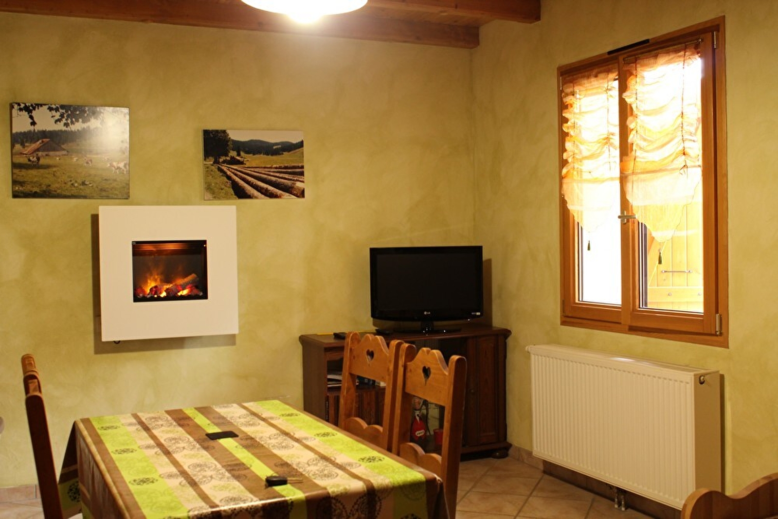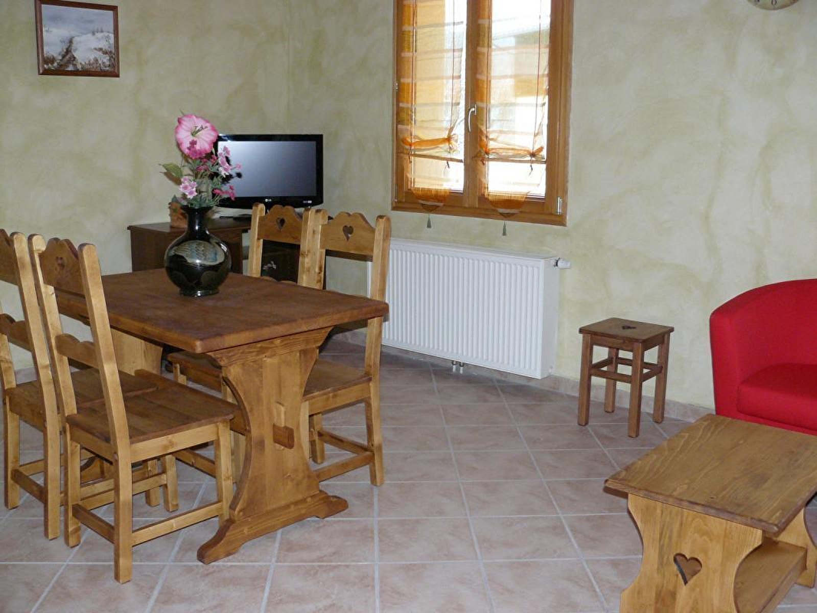 In het hart van het dorp, volledig gerenoveerde voormalige boerderij met meerdere gîtes. Begane grond: ski-/fietsenruimte. Eerste verdieping: ingerichte keuken, salon/woonkamer, CH1: 1 tweepersoonsbed, CH2: 2 eenpersoonsbedden, doucheruimte (haardroger), aparte WC. Balkon met prachtig uitzicht over het dorp. Aangrenzende niet omheinde tuin, tuinmeubelen en barbecue. Elektrische open haard. Ingangstelefoon en digicode. GRATIS BEVEILIGDE WIFI TOEGANG
