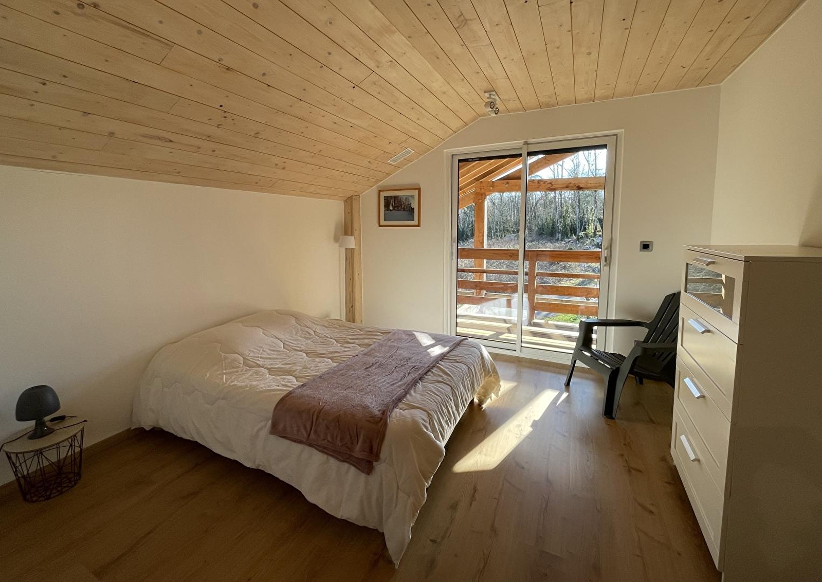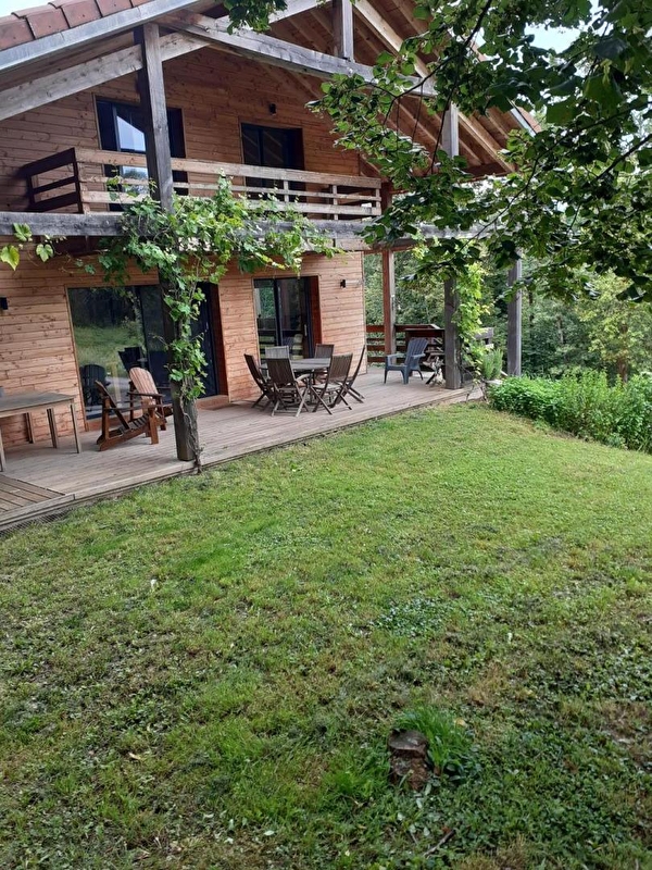Het New Hampshire Chalet is de familiedroom van Anne-Louise: een plek om samen te komen en nieuwe herinneringen te creëren, en een plek om te delen. De eigenaresse komt oorspronkelijk uit New Hampshire in de VS en werd verliefd op de regio met meren en kleine bergen die haar aan thuis doen denken. Dit moderne, milieuvriendelijke chalet bestaat uit een woonkamer met een volledig uitgeruste keuken, een zitkamer met tv en houtkachel, een slaapkamer met 1 tweepersoonsbed (140x190), een doucheruimte met bad en inloopdouche en een apart toilet. Boven is een mezzanine met een kleine zithoek met tv, boeken en gezelschapsspellen, een kantoorruimte ideaal voor telewerken, 2 slaapkamers met elk een tweepersoonsbed (140x190) en 1 slaapkamer met 1 tweepersoonsbed (140x190) en 2 stapelbedden, een doucheruimte met douche en een apart toilet. Buiten is er een heerlijk terras met tuinmeubelen en barbecue, en een garage voor het stallen van uw fietsen of motoren. Ideaal gelegen voor liefhebbers van fietsen, wandelen en paardrijden, kunt u ook de meren en watervallen verkennen en Bourg-en-Bresse in 30 minuten bereiken om het beroemde koninklijke klooster van Brou te bezoeken. Er is ook een petanquebaan op het terrein (gemeenschappelijk, maar net achter het chalet op het onverharde pad). Tennis op 8 km (Aromas). Er zijn ook gemarkeerde wandelroutes op het terrein. Let op: de kelder wordt het hele jaar door verhuurd.