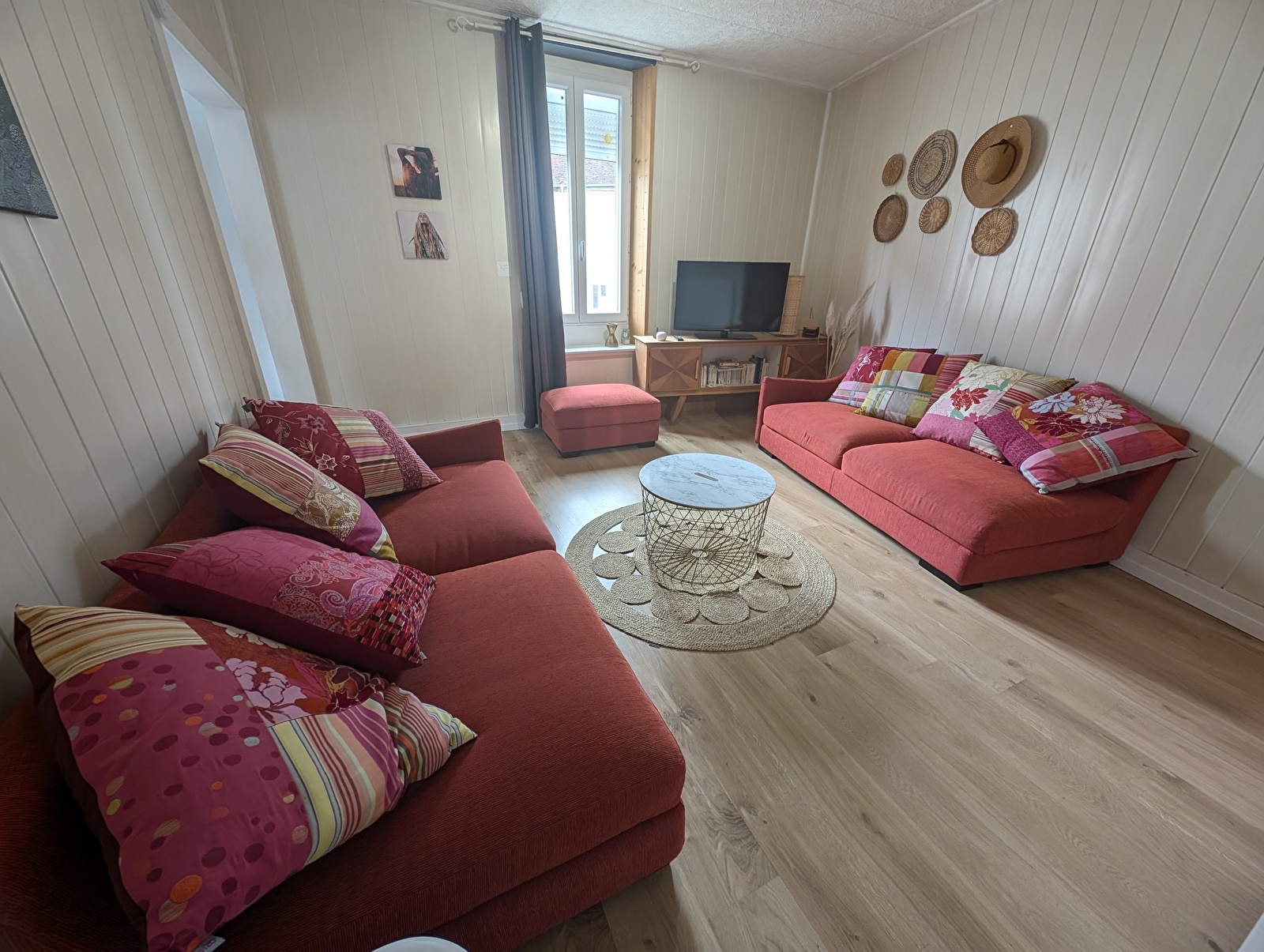 Charmant duplex 80m2 ligt in Mouchard en is een ruim appartement met een balkon, 2 slaapkamers, een woonkamer, een flatscreen-tv, een volledig uitgeruste keuken met een vaatwasser en een oven, en een badkamer met een douche. Handdoeken en beddengoed zijn aanwezig. Er is een eethoek buiten.