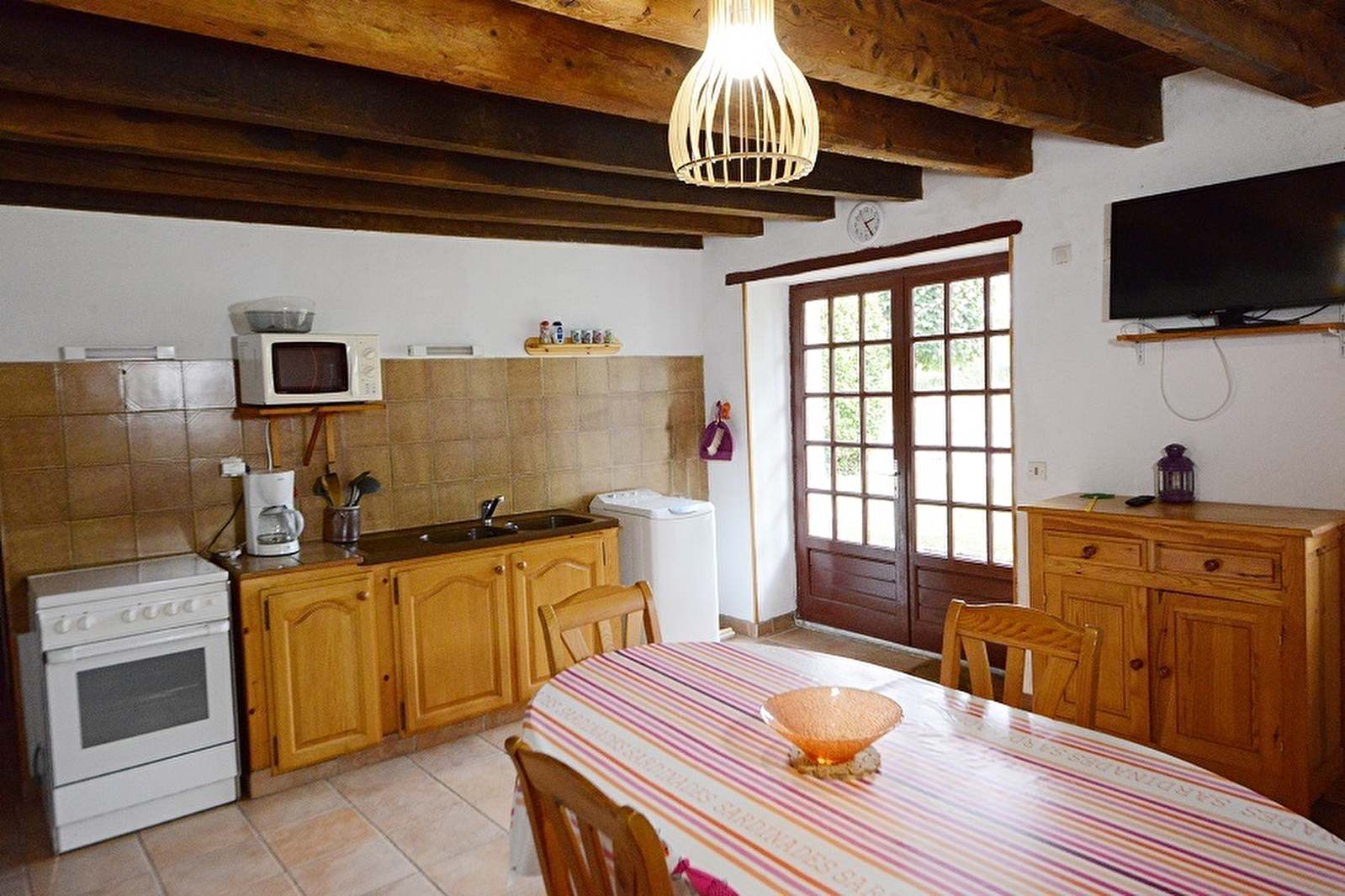 Accommodatie op de begane grond. Keuken, woonkamer, slaapkamer 1: 1 tweepersoonsbed, slaapkamer 2: 2 eenpersoonsbedden, badkamer met douche, omheinde aangrenzende tuin, tuinmeubilair, barbecue. Elektrische verwarming. Fietsen gratis beschikbaar. KWH aangerekend aan €0,15. Schoonmaakkosten van €60 + €30 indien niet goed schoongemaakt. Huur laken €20 per week.