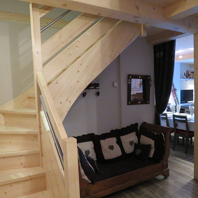 Laat je charmeren door dit volledig gerenoveerde duplex appartement met een berggevoel. Het bevindt zich op de 1e verdieping van het huis van de eigenaren en bestaat uit een gezellige woonkamer met een volledig uitgeruste keuken (inclusief fondue- en racletteapparaten), een zitkamer, een doucheruimte, een aparte wc en een slaapkamer met een tweepersoonsbed (160*200). Op de 2e verdieping vind je nog 2 slaapkamers, elk met een tweepersoonsbed (160*200) en een eenpersoonsbed, en een badkamer met wc. Terras met tuinmeubelen, barbecue en veel speeltoestellen voor kinderen: schommel, boomhut, fietsen, enz.