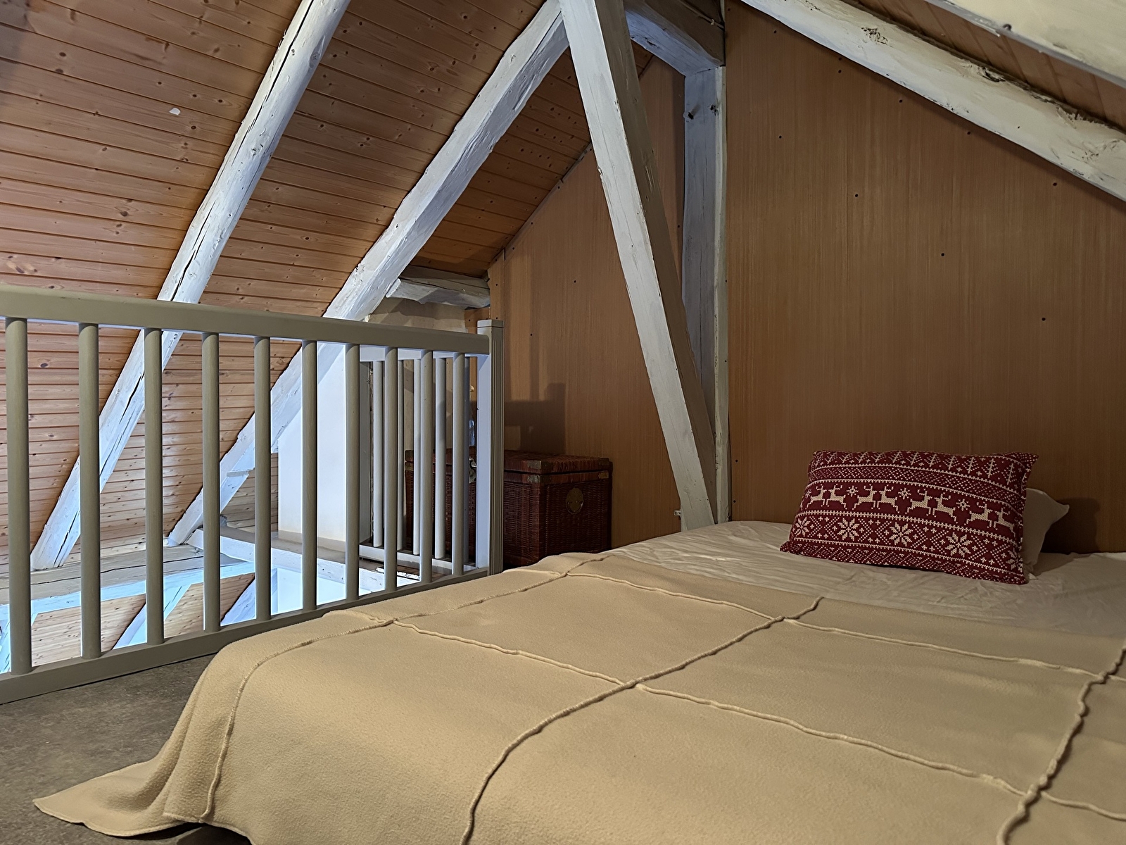 - Een tweede verdieping met vier andere slaapkamers, waaronder drie tweepersoonsbedden, een eenpersoonsbed (120) en een tweede badkamer.