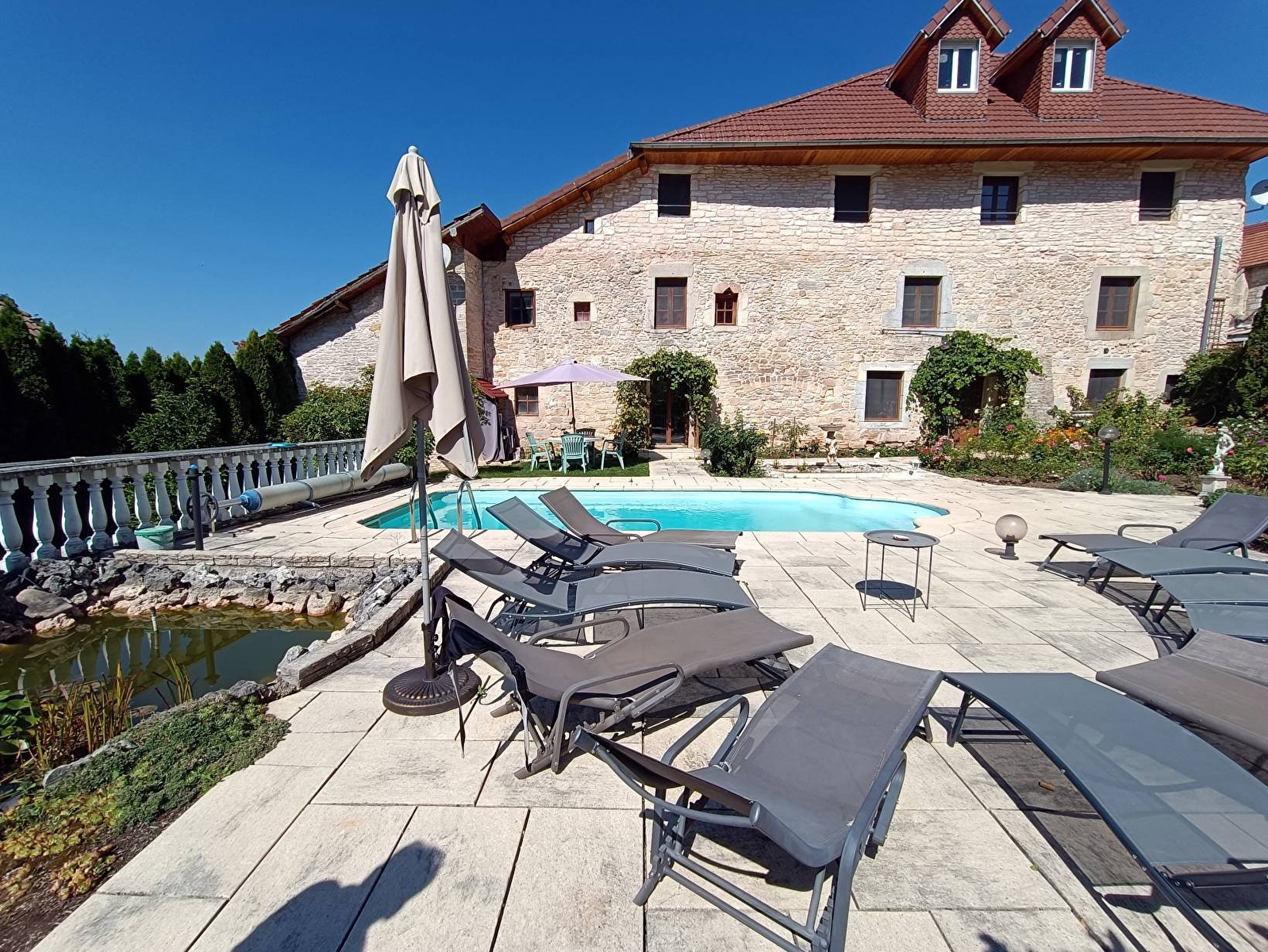In het hart van het Juragebergte biedt deze elegant gerestaureerde residentie uit 1786 een uitzonderlijke omgeving tussen Besançon en Zwitserland. Profiteer in een rustige sfeer van een wellnessruimte, een uitgestrekt bosrijk terrein en een zwembad voor een verblijf dat charme, sereniteit en comfort combineert.