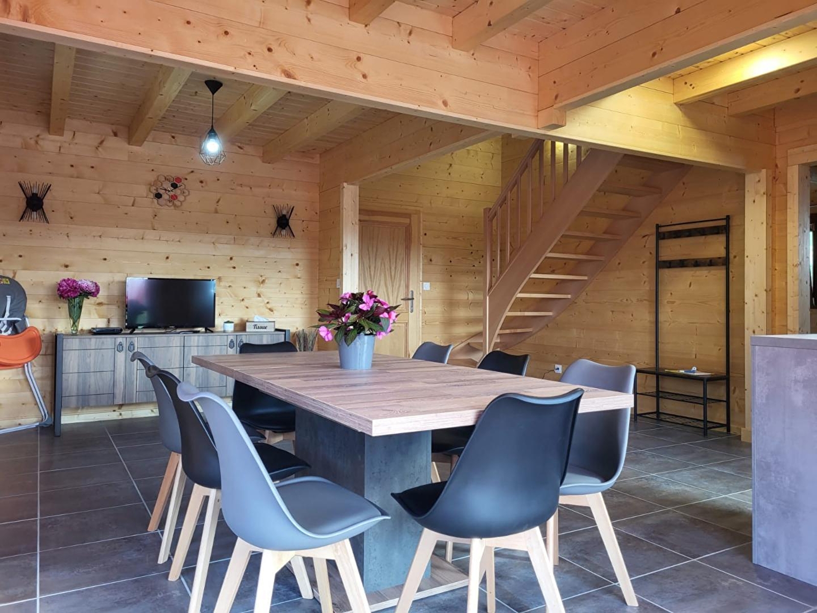 Ideaal gelegen vlakbij het Lac de Chalain, de Cascades du Hérisson en talrijke wandelpaden, opent dit zeer mooie chalet zijn deuren voor jou voor een ontspannend en verjongend verblijf! Op de begane grond vind je een mooie woonkamer met een volledig uitgeruste keukenhoek, een doucheruimte met een inloopdouche, een apart toilet en een slaapkamer met 1 tweepersoonsbed (140x190). Boven, op de mezzanine, een grote zithoek met een hoekbank en fauteuils, een slaapkamer met een tweepersoonsbed (140x190) en 2 eenpersoonsbedden (90x190). Wasruimte met wasmachine, vriezer en extra bergruimte (fietsen, etc.). Het terras met tuinmeubelen en barbecue biedt een prachtig uitzicht op het omliggende landschap. Aangrenzend niet omheind perceel. Een must-see!
