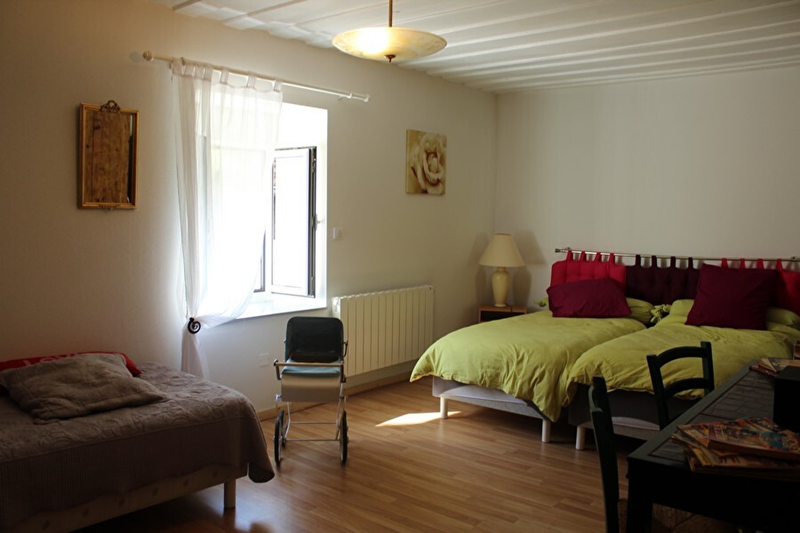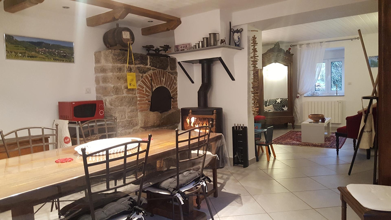 Aangename gerenoveerde gîte in een halfvrijstaand huis met zichtbare stenen muren, gelegen aan de oevers van de Seille en vlakbij Chateau Chalon. Begane grond: mooie woonkamer met open keuken en eethoek. Een houtkachel (hout gratis) is ideaal voor winteravonden bij het vuur! Doucheruimte met WC. Boven: een 1e slaapkamer met 3 eenpersoonsbedden (90x200), waarvan er 2 kunnen worden samengevoegd tot een tweepersoonsbed. Een 2e slaapkamer grenzend aan de 1e met 1 bed van 140x190. Er is een klein buitenterras voor de gîte en een kleine, rustige plek aan de oever van de Seille met tuinmeubilair en barbecue. Privé parkeerplaats voor de gîte. De aangrenzende gîte (referentie G2339) is geschikt voor maximaal 9 personen.
