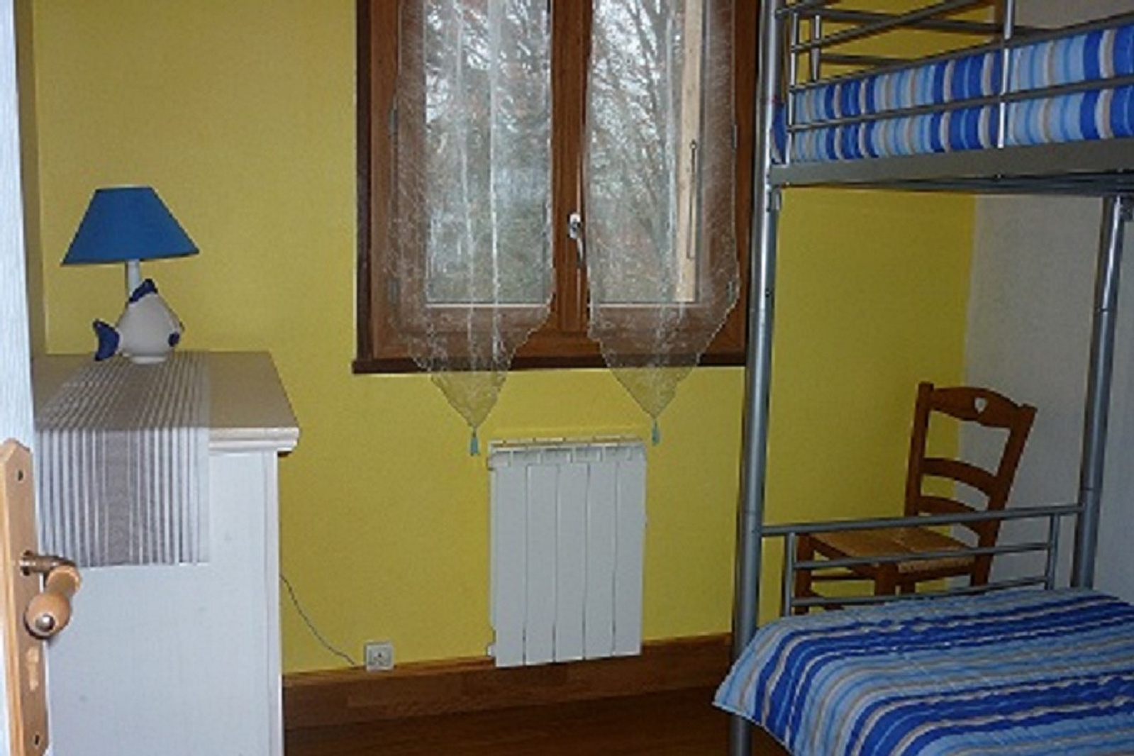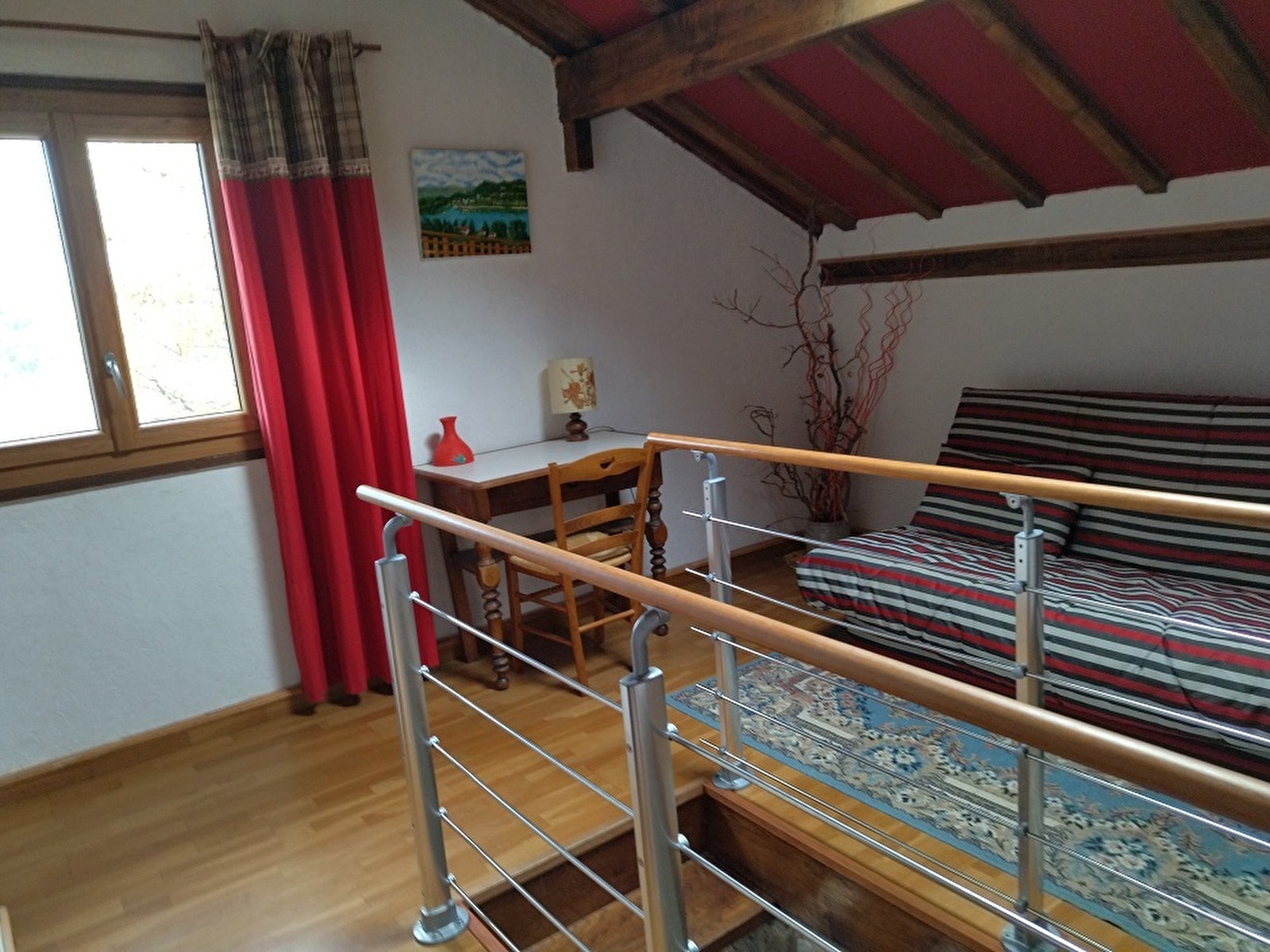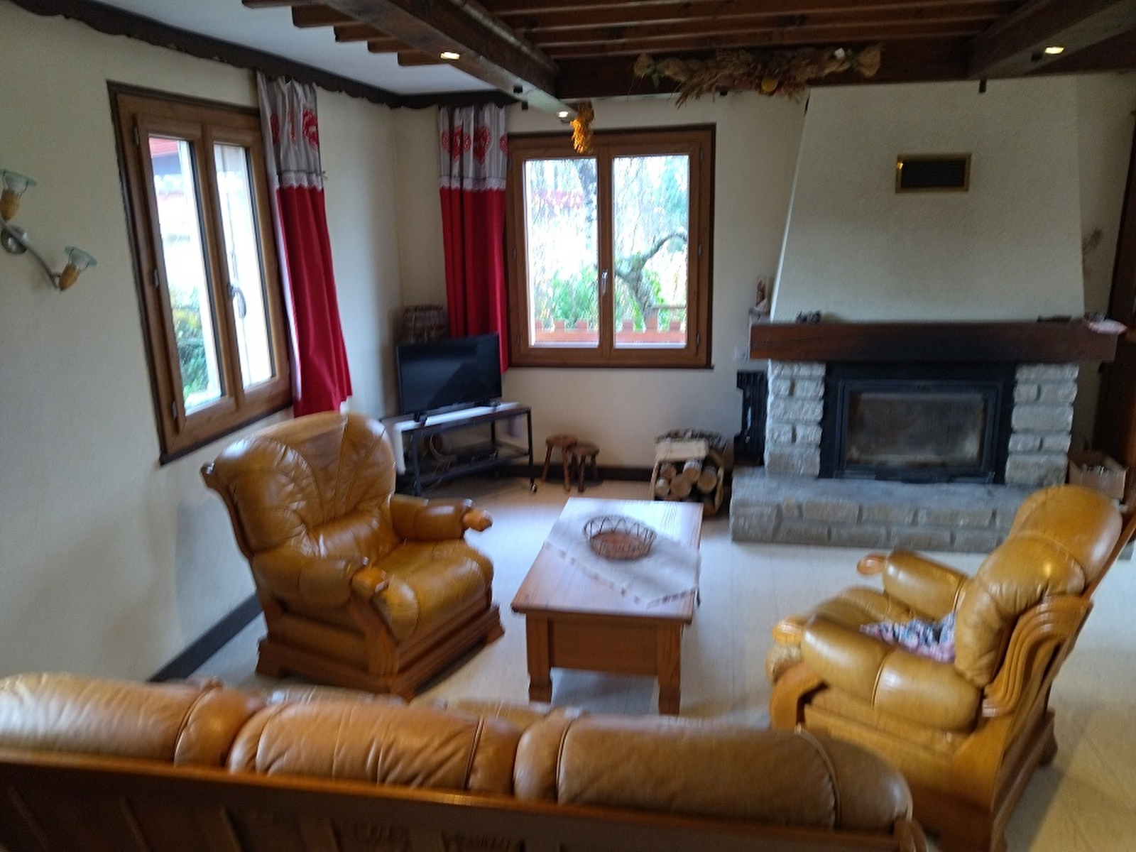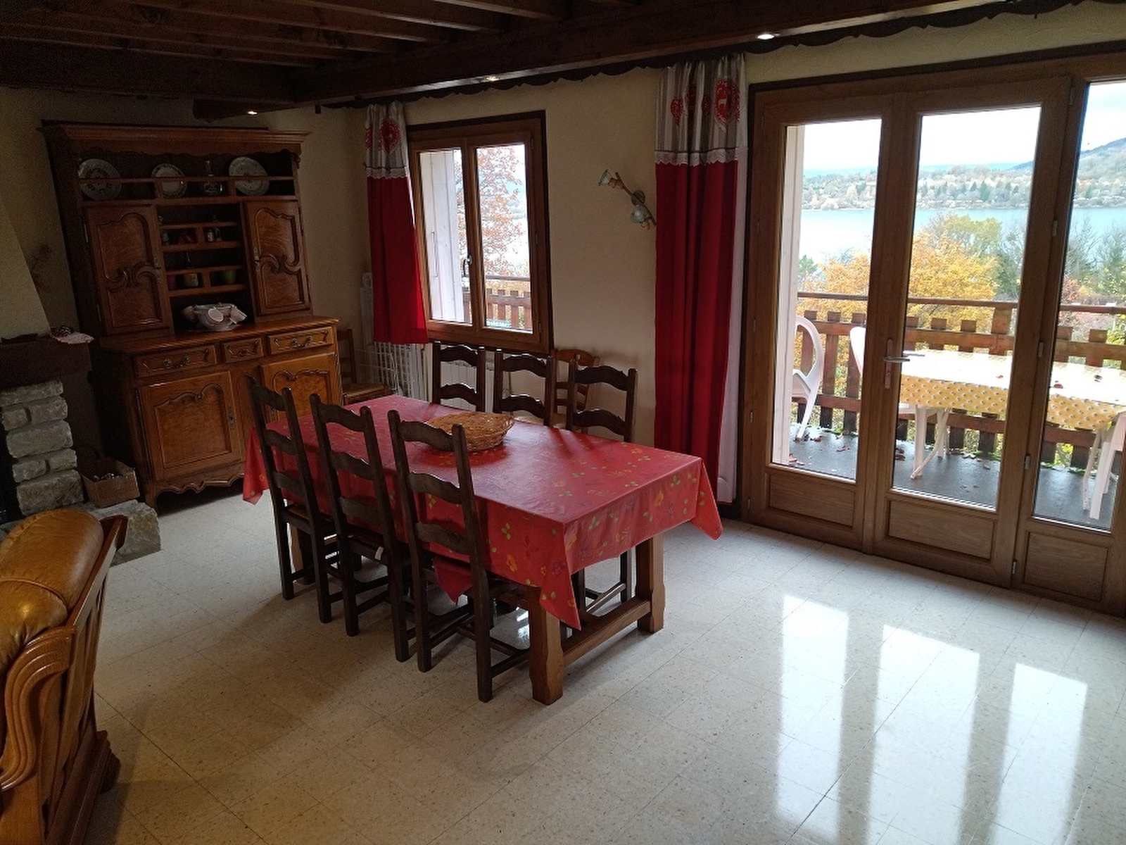 Vrijstaand huis in chaletstijl aan de oevers van het meer van Chalain. Begane grond: grote woonkamer met tv, open haard, eetkamer en ingerichte keuken, doucheruimte met hydrotherapiedouche en apart toilet. Boven: mezzanine met slaapbank voor 2 personen, badkamer met hydromassagebad, CH1: 2 eenpersoons stapelbedden, CH2: 1 tweepersoonsbed (160cm), CH3: 1 tweepersoonsbed (160cm) (kan op verzoek worden verdeeld in 2 eenpersoonsbedden (80cm)) en apart toilet. Aangrenzende omheinde tuin met tuinmeubelen en barbecue in de zomer, binnenplaats en groot balkon met prachtig uitzicht over het meer. Afgesloten privé garage. Elektriciteit: 15 kw/dag gratis. TARIEVEN PER HUISDIER: €4,5 per dag