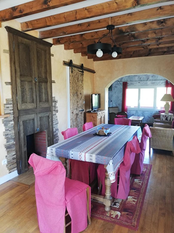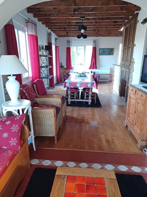Vrijstaand huis met uitzicht over het meer van Chalain vanaf een groot terras. GRATIS toegang tot het strand te voet. Gelegen in een doodlopende straat, in een rustige en ontspannen omgeving. Omheinde tuin met bomen, tuinmeubelen, barbecue, schommel. Wandelen vanaf het huis (rondje om het meer 9 km )