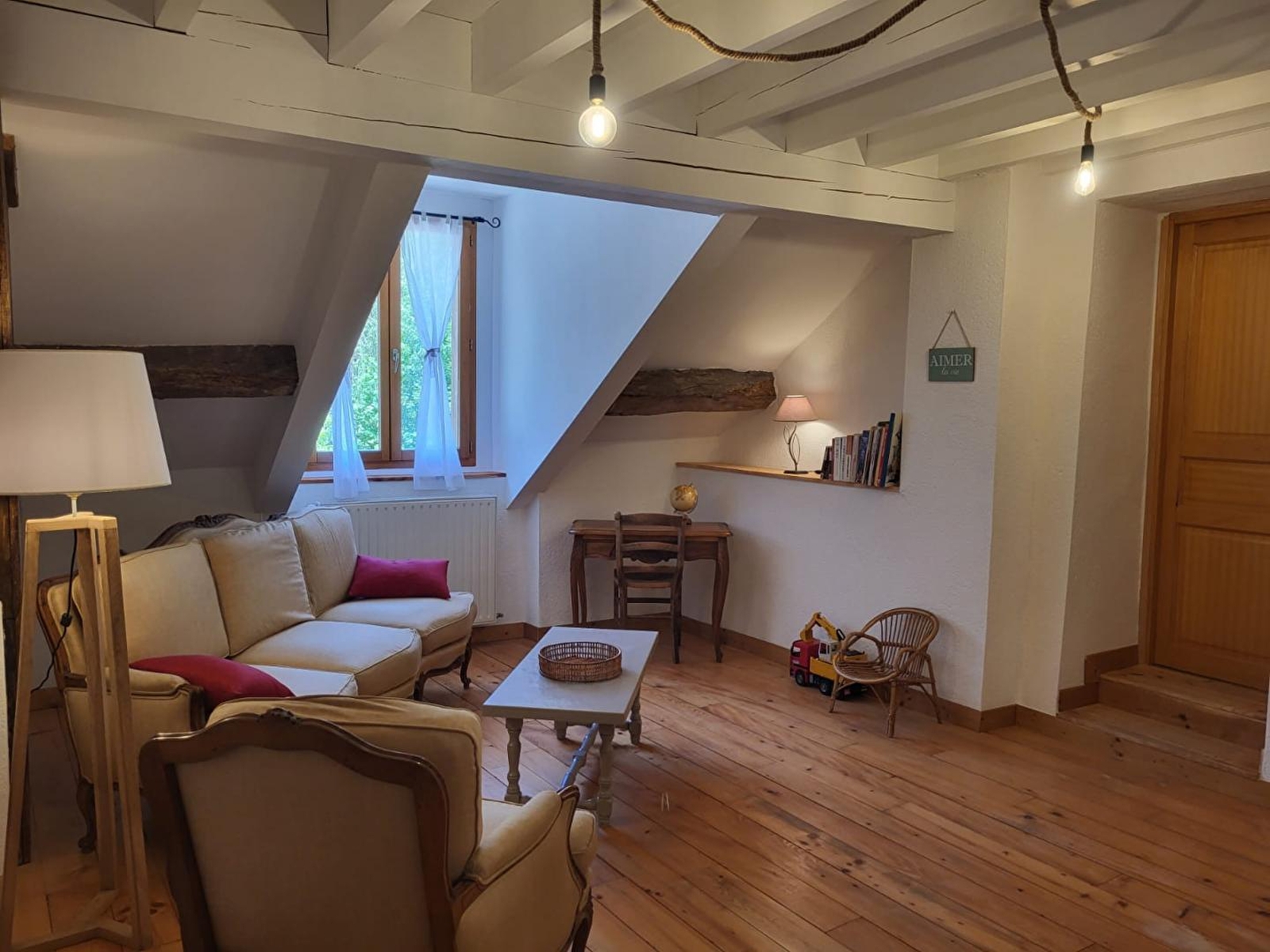 Dit stenen huis, een klein paradijsje in het hart van het dorp, is ideaal voor je volgende vakantie met familie of vrienden. De begane grond bestaat uit een woonkamer met tv en open haard (hout gratis beschikbaar), een volledig uitgeruste keuken, een apart toilet en op de bovenverdieping een ontspanningsruimte met spelletjes en boeken, een gezinssuite met 1 bed van 160 cm, een eenpersoonsbed en een badkamer met douchecabine en toilet, een tweede slaapkamer met 3 eenpersoonsbedden en een badkamer met bad en toilet. Buiten kun je genieten van het mooie weer op het terras met tuinmeubilair en barbecue, en een groot omheind terrein met bomen en ligstoelen, aan de oever van de rivier. Leun achterover op uw ligstoel en u zult nooit genoeg krijgen van de beroemde afgelegen plekjes die de reputatie van Baume les Messieurs hebben gemaakt... Er is een ruimte beschikbaar voor uw fietsen en kinderwagens.... Vanuit de gîte kun je te voet naar de grotten, de abdij en de waterval. Er zijn ook restaurants in het dorpscentrum. Ideaal gelegen voor het verkennen van het pittoreske dorpje Château-Chalon en zijn beroemde vin jaune, het kuuroord Lons-le-Saunier, Poligny, hoofdstad van de Comté-regio, of het merengebied met de watervallen van Hérisson en het meer van Chalain.