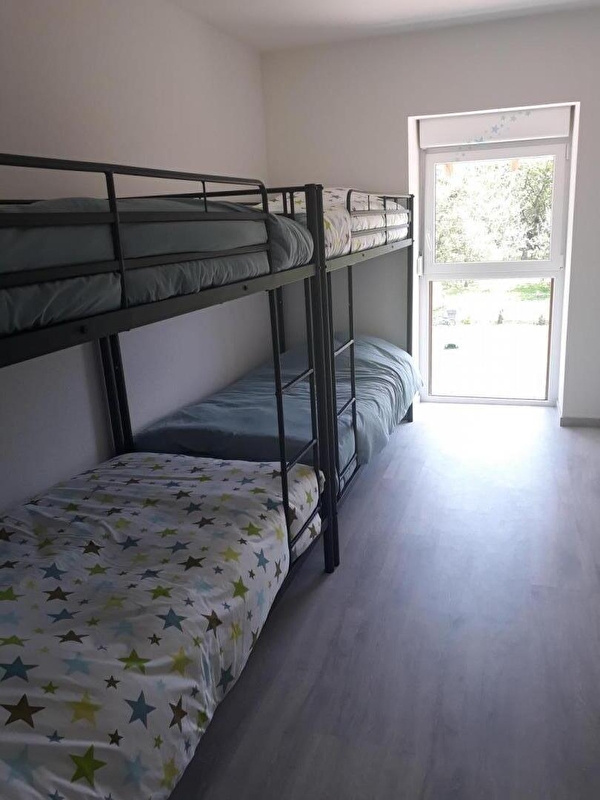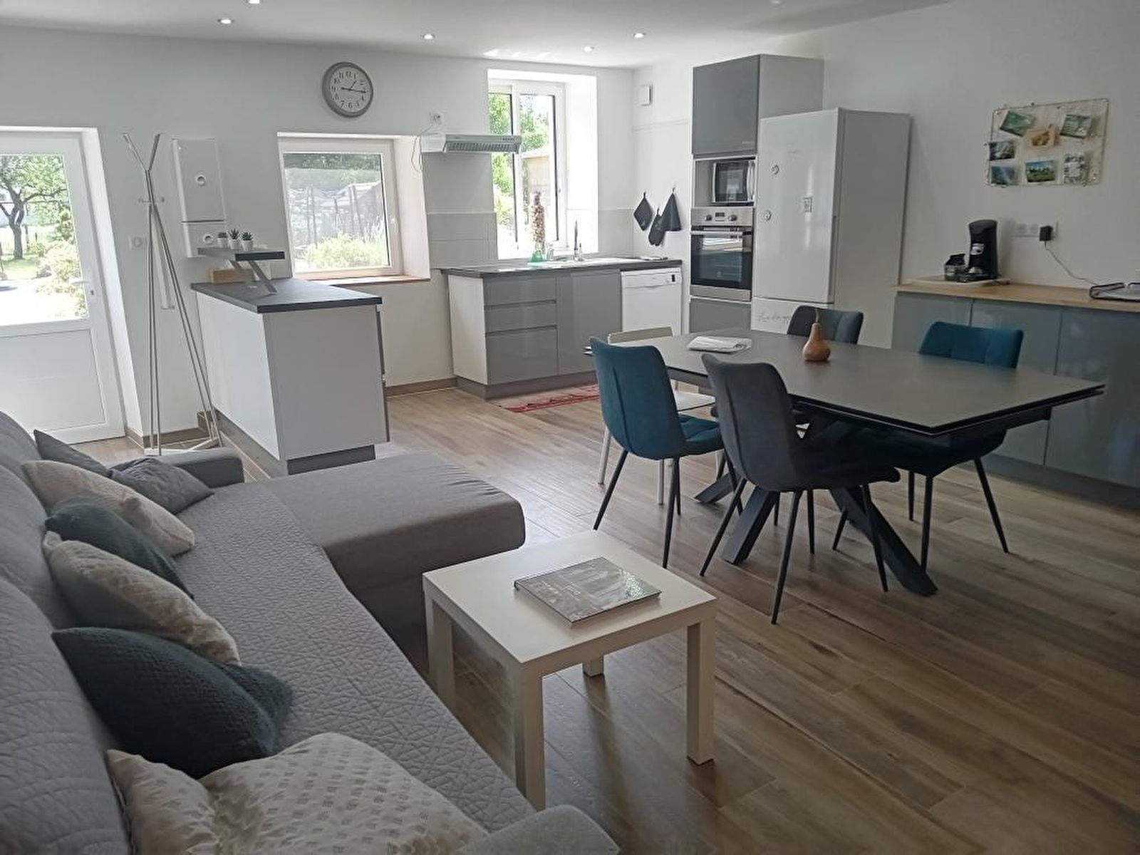 In het hart van de wijngaarden van de Jura, op 10 minuten van Arbois, in dit mooie dorpje, ontdek deze volledig gerenoveerde gîte in het huis dat grenst aan dat van de eigenaren. Op de begane grond is er een mooie woonkamer met een volledig uitgeruste keuken, een zitkamer met bank en flatscreen-tv, een doucheruimte met inloopdouche en apart toilet, en een eerste slaapkamer met een bed van 160 cm. Boven zijn er 3 slaapkamers, één met een bed van 160x200 cm, één met een bed van 140x190 en één met twee stapelbedden van 90x190. Doucheruimte met inloopdouche en wc. Buiten is er een privéterras met tuinmeubelen en barbecue (plancha) bij mooi weer, en een omheinde tuin. De tuin wordt gedeeld met de eigenaren om de jongste gasten toegang te geven tot de verschillende speeltoestellen (schommel, trampolines, klein chalet....). Wacht niet langer om je verblijf te boeken!
