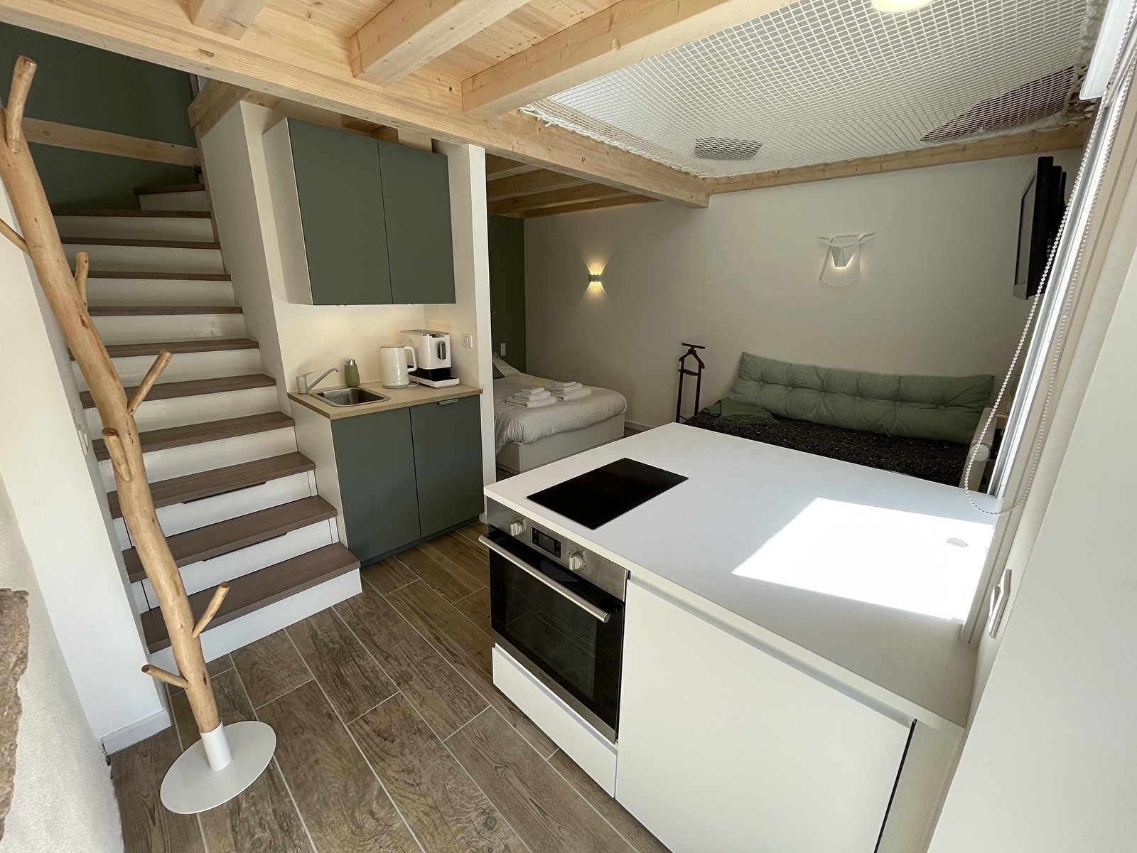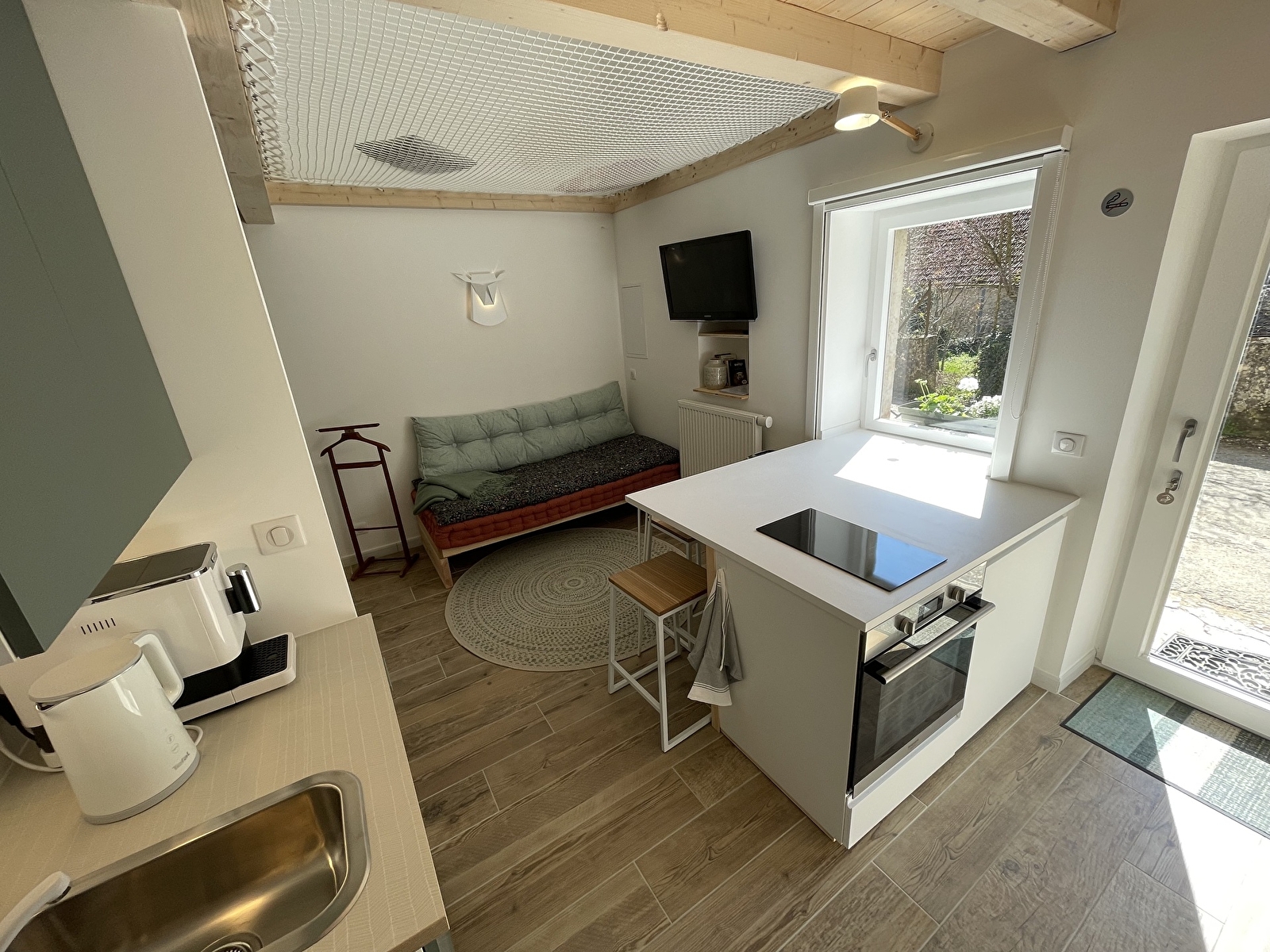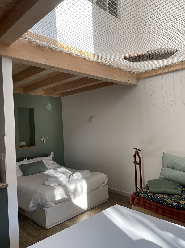 De gîte Cerf cerf ouvre moi is een duplex van 40m² dat plaats biedt aan 3 personen + 1 baby, het omvat: