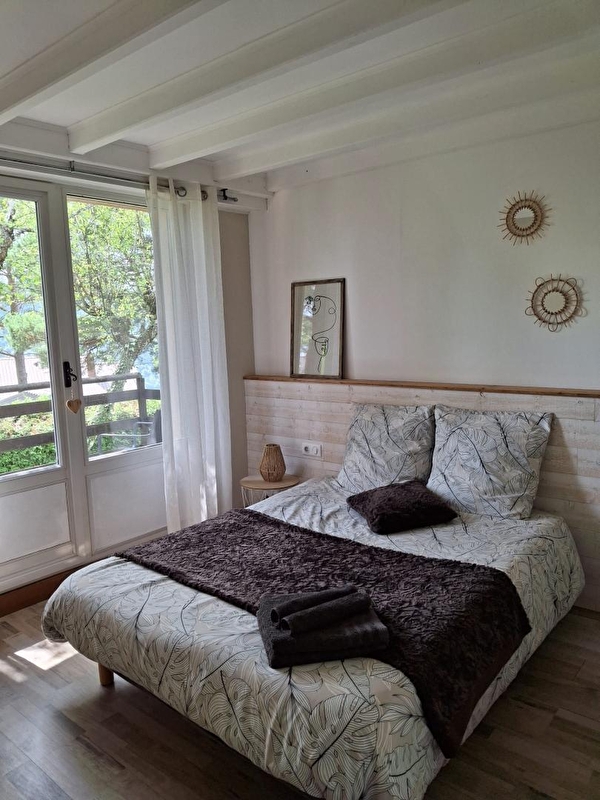 Op de hoogten van Maisod, op een rustige locatie dicht bij het Lac de Vouglans, bestaat dit huis uit een woonkamer met volledig uitgeruste keuken, een zithoek met bank/TV en houtkachel, een bibliotheekhoek met kinderspelletjes en boeken, een slaapkamer met 1 tweepersoonsbed (140*190), een slaapkamer met een tweepersoonsbed (160*200), een badkamer met bad en een apart toilet. De 3e slaapkamer, die alleen toegankelijk is via de buitenkant en zich in de kelder bevindt (plafondhoogte = 185 cm), heeft een tweepersoonsbed (140*190), een kitchenette en een badkamer met douche en wc (ideaal voor 2 personen die met familie of vrienden weg willen en toch hun onafhankelijkheid willen behouden). Buiten geniet je van een overdekt terras met tuinmeubelen en een schaduwrijke, beboste tuin met ligstoelen en tuinstoelen. Ideaal gelegen, de eerste stranden en de kleine jachthaven met een bootlancering liggen op slechts 5 minuten rijden met de auto, en er zijn verschillende wandel- en fietspaden vanaf de gîte die naar het meer leiden. Je kunt ook de geheimen van het maken van de beroemde Comté-kaas proeven en ontdekken in de zuivelfabriek van Thoiria (10 minuten met de auto) en de watervallen van Hériosson bewonderen in ongeveer dertig minuten.