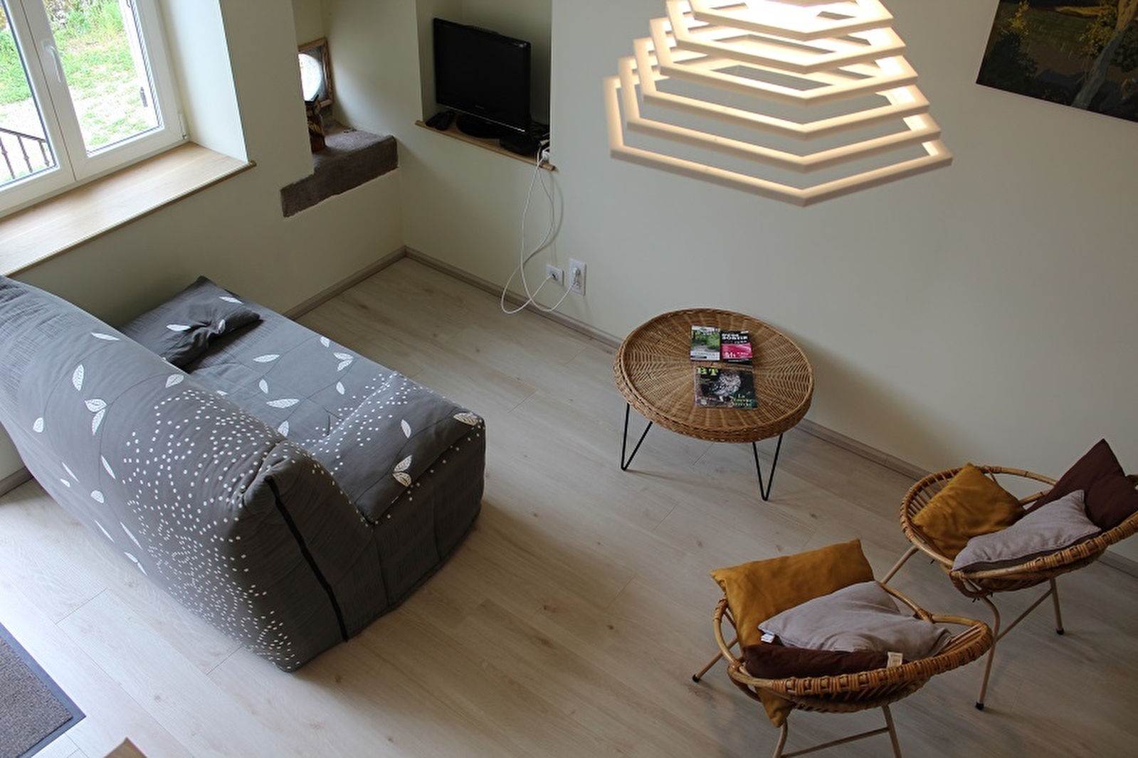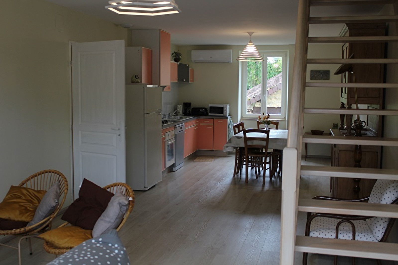 In het hart van de wijngaarden van Zuid-Revermont, op 14 km van Lons-le-Saunier, onlangs gerenoveerde gîte voor 4 personen met airconditioning, in een aangrenzend huis met het huis van de eigenaren. Verhoogde begane grond, ingang via balkon of schuur. Begane grond: grote woonkamer met slaapbank, televisie, ingerichte keuken (kleine elektrische apparaten, oven, vaatwasser), badkamer met douche, wastafel en wasmachine, strijkijzer, toilet. Boven: een slaapkamer met een tweepersoonsbed (mogelijkheid voor een kinderbedje), een slaapkamer met twee eenpersoonsbedden, een badkamer met douche en toilet. Bijgebouwen (schuur, kelder met tafelvoetbal en pingpongtafel, zolder met waslijn). Buiten is er een terras waar je van het mooie weer kunt genieten. In het dorp heten twee wijnboeren u welkom in hun degustatiekelder, bezoek La Caborde, wandelen, mountainbiken, greenway (mountainbikeverhuur, VTC, elektrische fiets, kinderkar, in Lons-le-Saunier), grotten, afgelegen gebieden, watervallen en andere natuurgebieden, vissen, zwemmen (Vouglans, Clairvaux les lacs, Chalain, meer van Louvarel, enz.), paardrijden, thermale baden, bowling, casino, bioscoop, mediatheek in Lons-le-Saunier, enz.