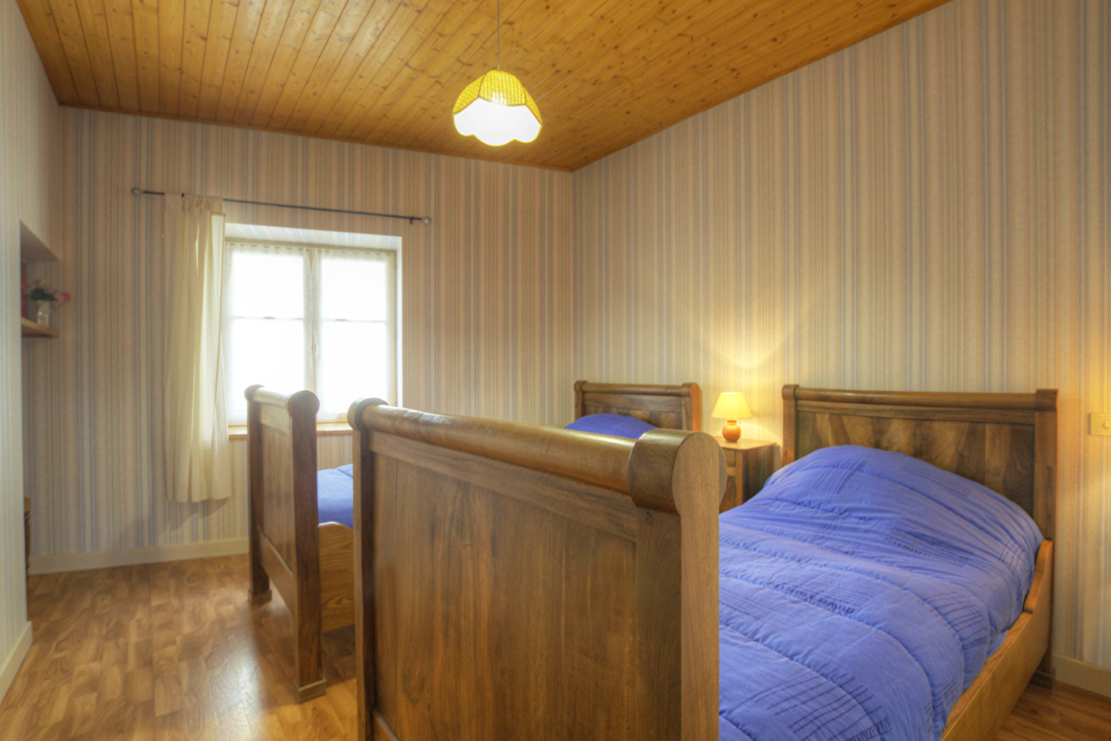 Woonkamer met geïntegreerde keuken en zithoek, badkamer, 2 slaapkamers (1 tweepersoonsbed, 2 eenpersoonsbedden). Centrale verwarming op stookolie. Garage met wasmachine. Balkon en omheinde privé binnenplaats, tuinmeubelen, zandbak. Restaurant op 2 km. Datum van renovatie: 1994. Schoonmaakkosten beschikbaar: 40€.
