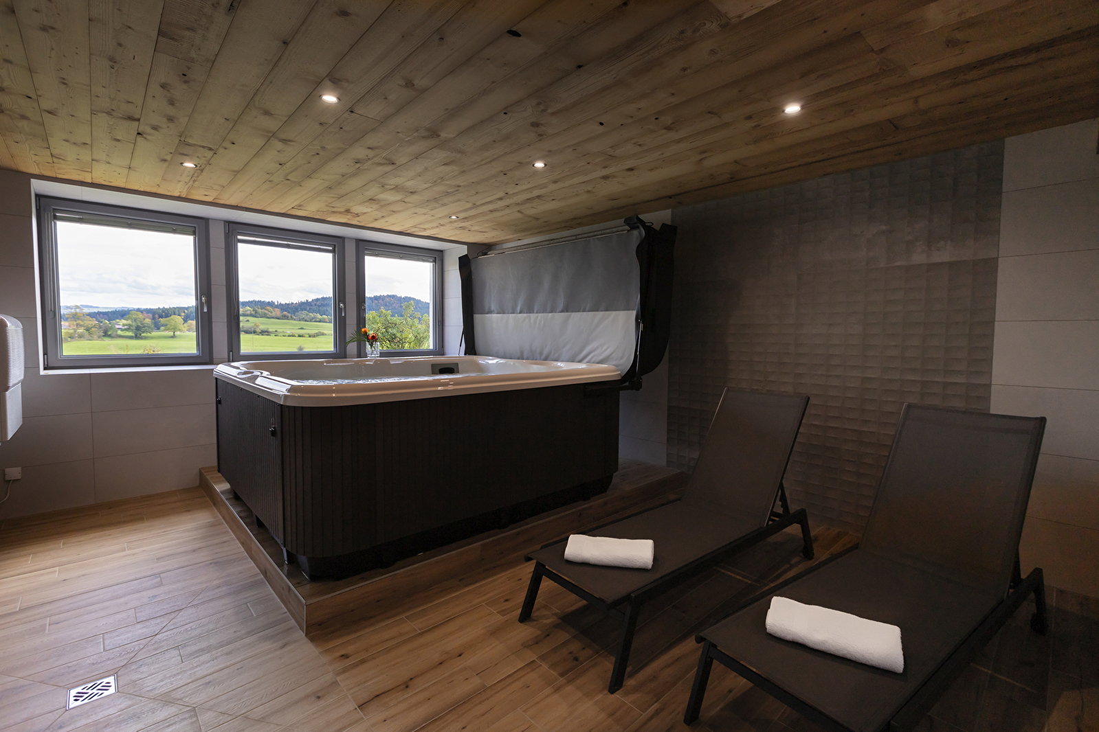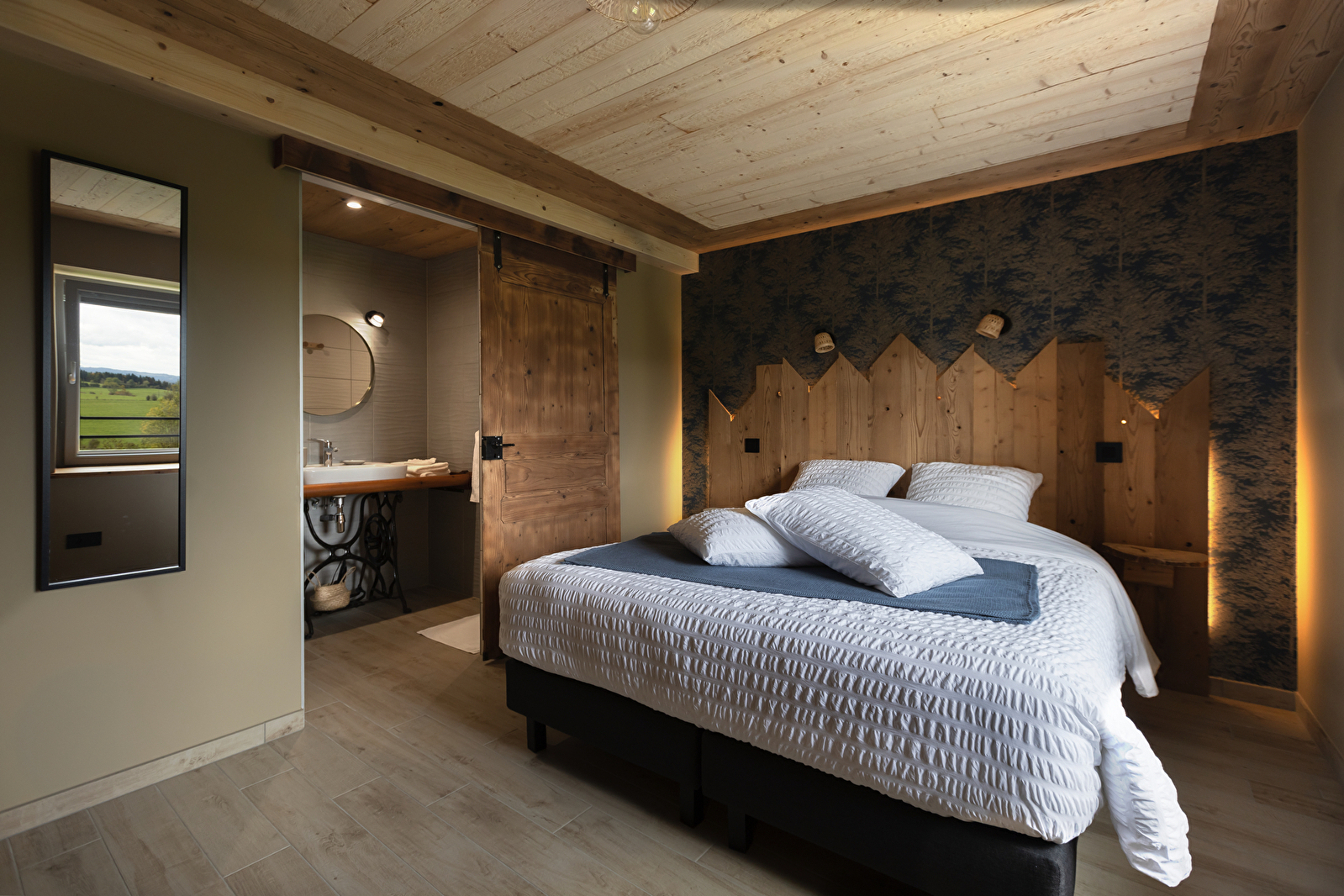 Met uitzicht op de bergen en dennenbomen, en onder het toeziend oog van herten en Montbéliard koeien, vind je hier rust en welzijn.