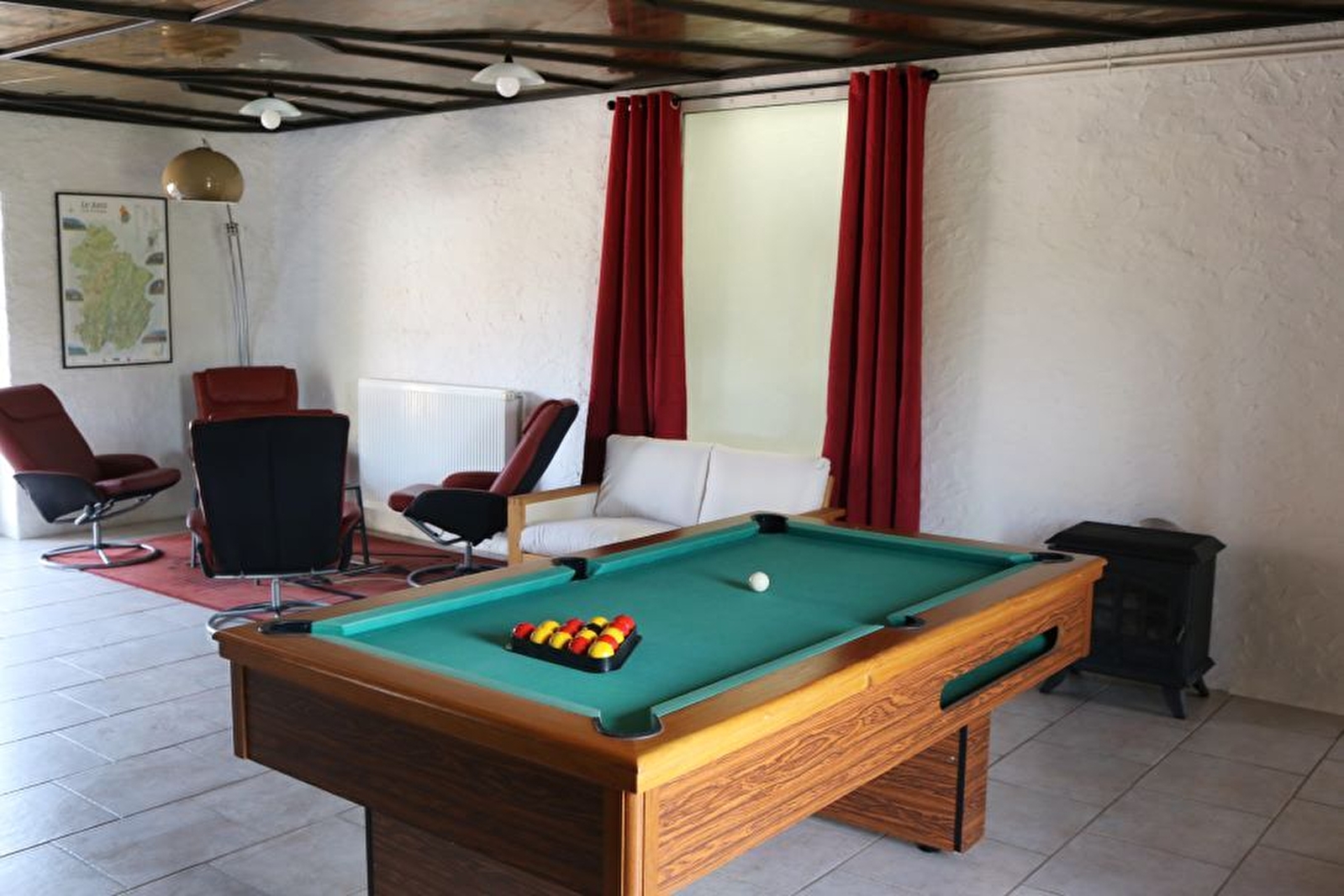 Als je op zoek bent naar rust en open ruimtes, dan is deze gîte echt iets voor jou! Hij bestaat uit een grote ruimte met een volledig uitgeruste keuken, een speelruimte met een biljarttafel en een houtkachel, een woonkamer met een open haard waar je kunt genieten van gezellige momenten rond een klein haardvuur, een eetkamer, een wasruimte met een wasmachine en een wasdroger, een doucheruimte met een douche en een wc en een tweede aparte wc. Boven: mezzanine met tv, fitnessapparatuur (roeimachine, fiets, stepper), 1 slaapkamer met tweepersoonsbed (140 cm) en eigen badkamer met douche (douche en wc), een tweede slaapkamer met tweepersoonsbed (140 cm) en eigen badkamer (bad en wc), een derde slaapkamer met 2 eenpersoonsbedden en een slaaphoek met 2 stapelbedden en 2 eenpersoonsbedden. Buiten vind je tuinmeubilair, een barbecue/plancha en ligstoelen om te genieten van de rust. Er zijn ook 5 fietsen en een petanqueterrein. De kers op de taart: gratis onbeperkte toegang tot SwinGolf (een baan direct naast de gîte), met materiaal in bruikleen. De gîte is ideaal gelegen om tal van toeristische attracties te ontdekken, zoals de pittoreske dorpjes Baume les Messieurs en Château-Chalon, Dole, een stad van kunst en geschiedenis, Beaune en zijn beroemde Hospices, het Château de Pierre de Bresse, en het watersportcentrum Desnes, waar je 's zomers verkoeling kunt zoeken... Mogelijkheid tot het onderbrengen van 1 of 2 extra personen op aanvraag bij de eigenaars.