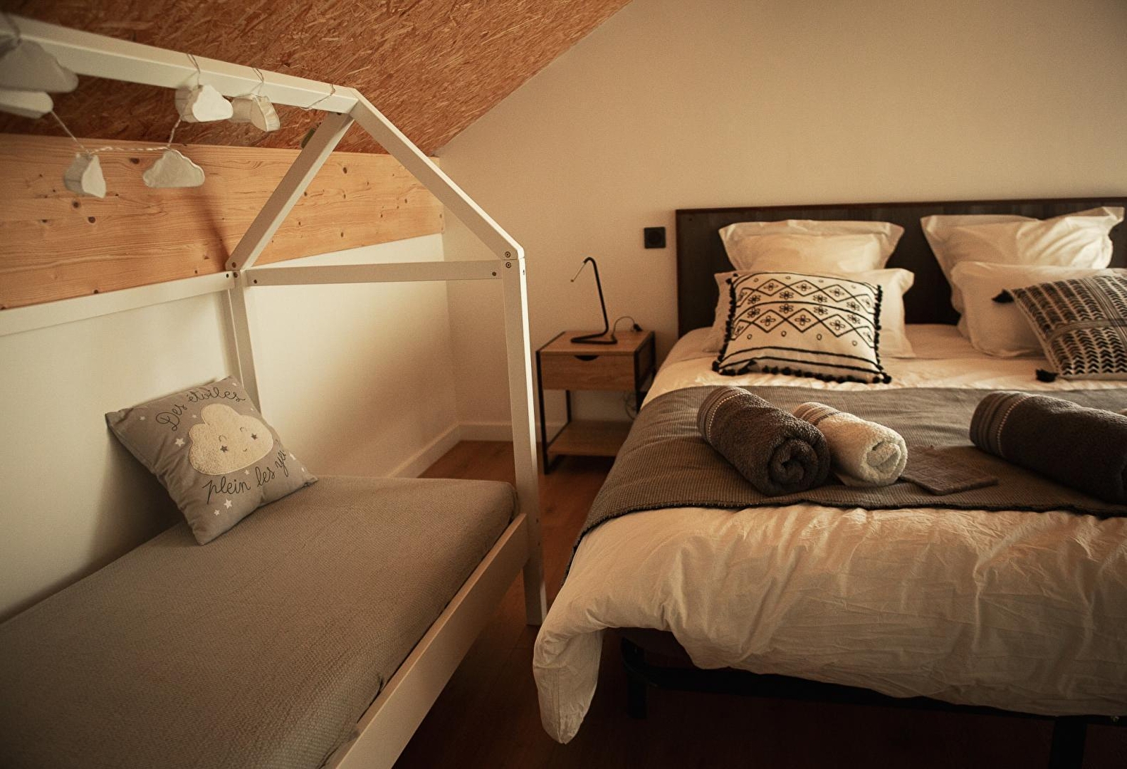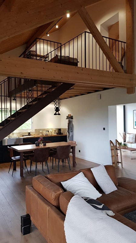 Laat je charmeren door dit eigentijdse huis, ingericht in een warme, industriële stijl. Begane grond: hal met zithoek en houtkachel, grote, lichte woonkamer met volledig uitgeruste keuken, eethoek en zithoek met bank, tv, home cinema, luidsprekers en dvd-speler. Een slaapkamer met 1 tweepersoonsbed (160 x 200), een doucheruimte met douche en wc, garage met wasmachine en wasdroger. Boven kun je tafelvoetballen of relaxen in het hangnet. Je vindt er ook 2 slaapkamers: 1 met een tweepersoonsbed (160*200) en een kajuitbed (voor kinderen tot 6 jaar) en 1 met 2 eenpersoonsbedden (90*200) die kunnen worden samengevoegd, 1 doucheruimte en 1 aparte wc. Voor je comfort zijn de bedden opgemaakt bij aankomst, zijn er handdoeken en is de schoonmaak inbegrepen. Buiten kunt u genieten van het terras, compleet met tuinmeubelen, lounge en vuurplaats. Ideaal gelegen in het hart van het merengebied, de watervallen van Hérisson liggen op slechts 5 minuten afstand, net als het meer van Clairvaux-les-lacs. Je zult genieten van spectaculaire wandelingen, waaronder de Pic de l'Aigle en zijn adembenemende uitzicht op de 4 meren. Of maak een tocht rond het Lac de Bonlieu (op 5 minuten afstand). Je kunt ook lokale producten ontdekken zoals Comté en Morbier kazen bij de kaasmakerij op slechts 5 minuten van het chalet.