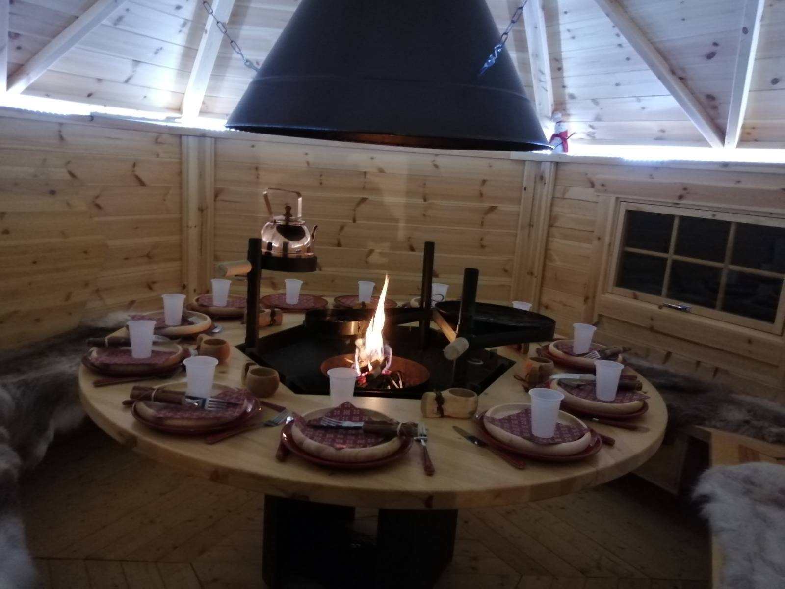 een woonkamer en een gezellige lounge rond de open haard. Er is een slaapbank voor 2 personen.