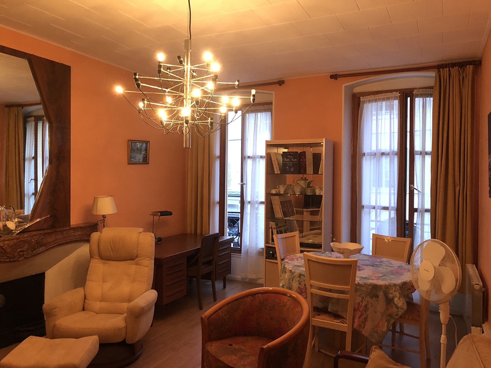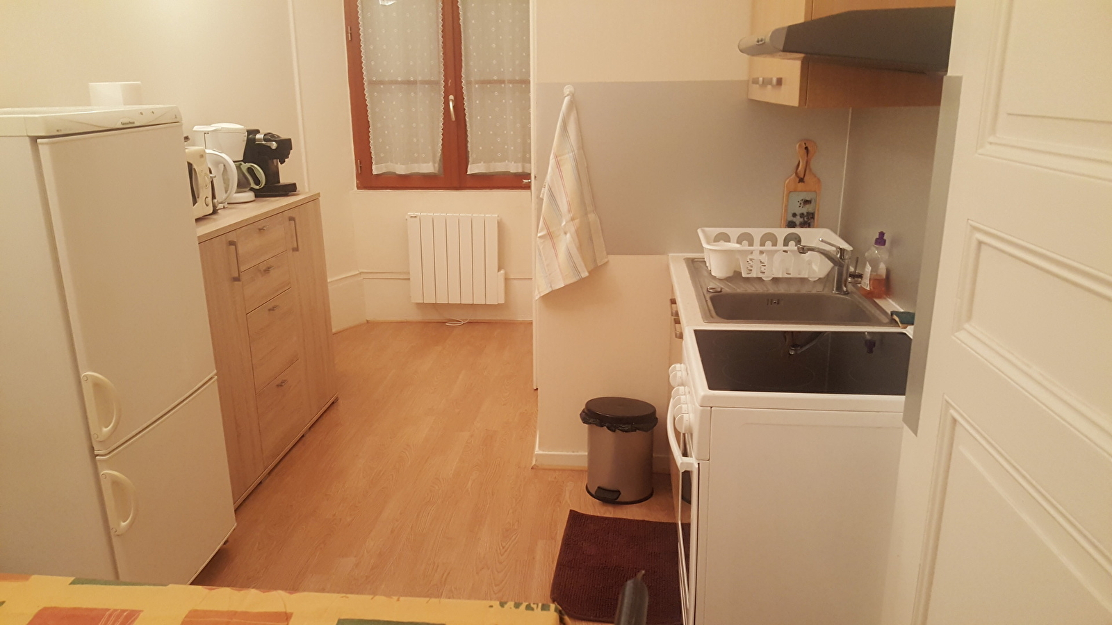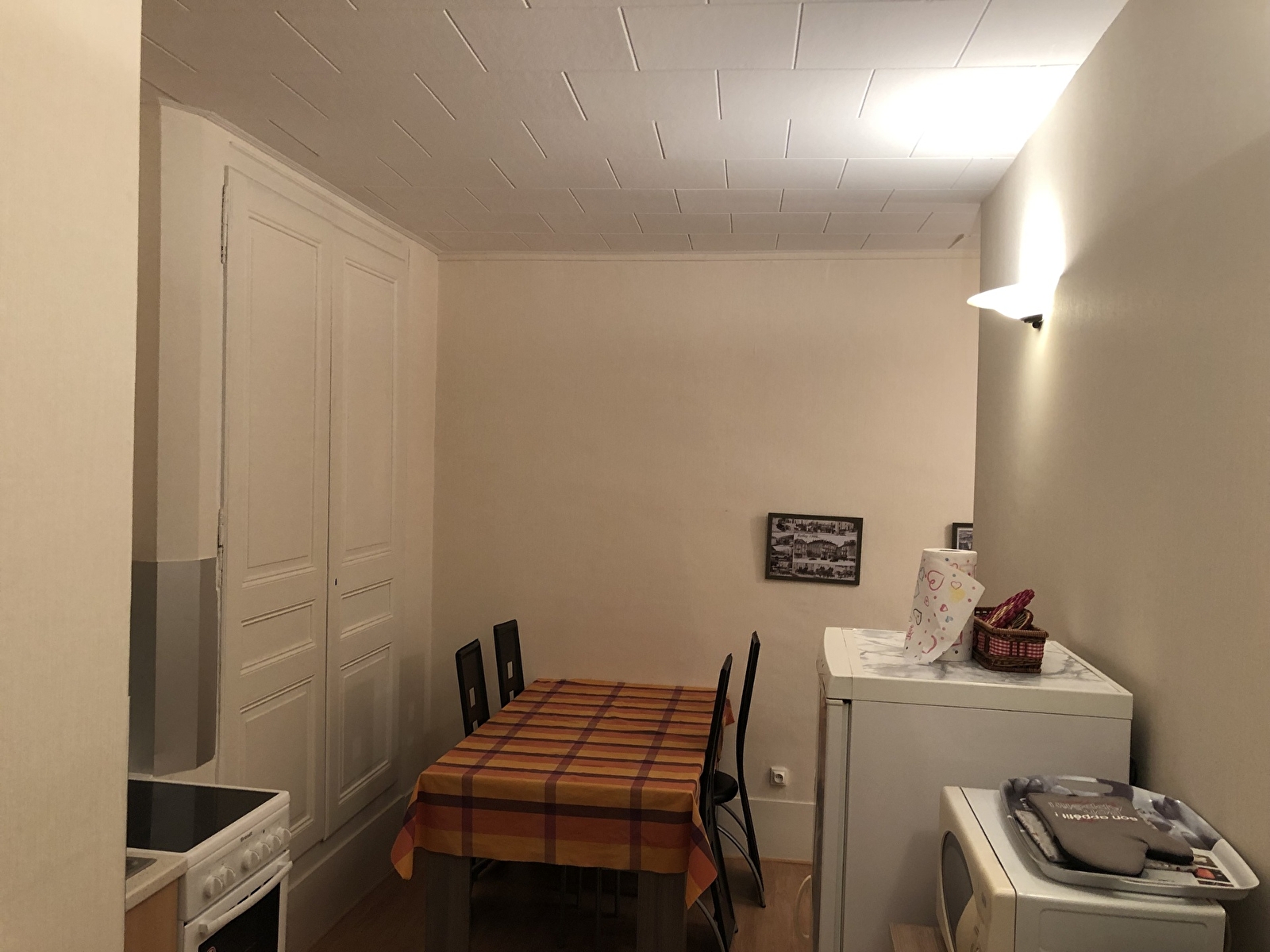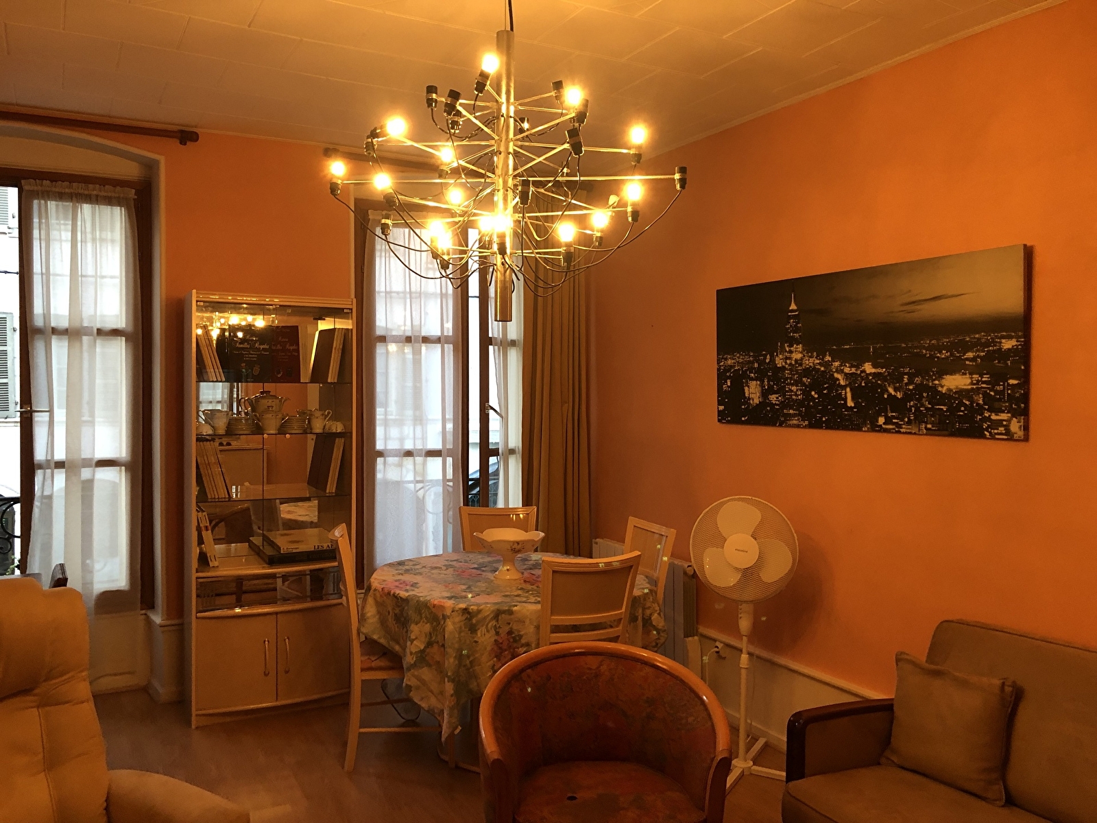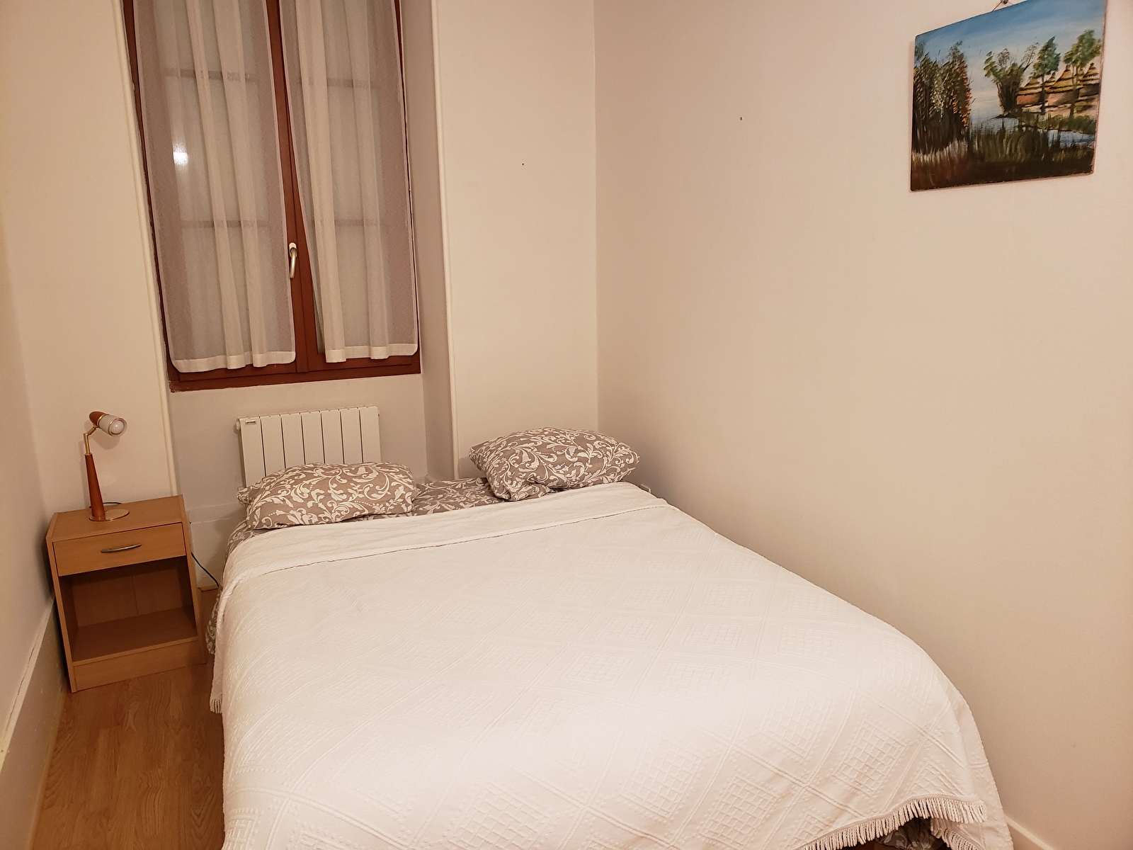 Het appartement bevindt zich op de eerste verdieping van een gebouw met twee verdiepingen en is beveiligd met een digicode. Het heeft twee slaapkamers, een volledig uitgeruste keuken, een grote woonkamer en een eetkamer.