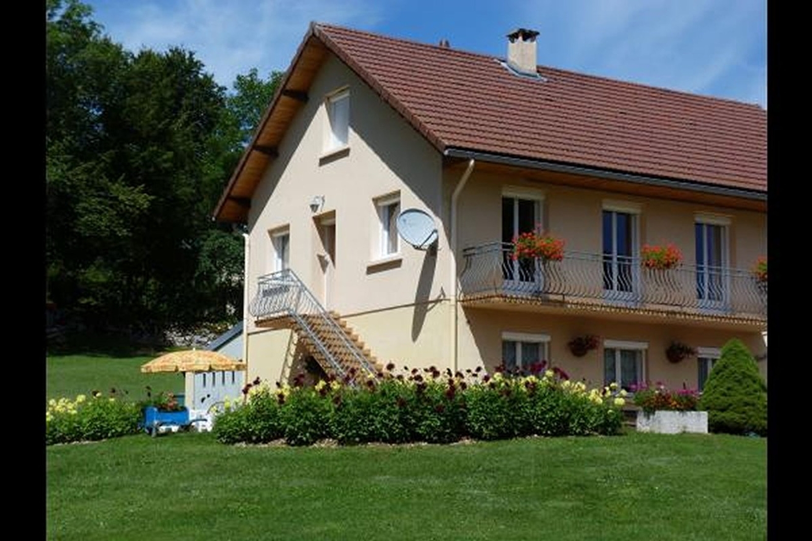 34 m² appartement op de begane grond van de villa van de eigenaar, met eigen ingang: keuken-woonkamer (slaapbank (140x190), televisie, wasmachine), 1 slaapkamer (1 tweepersoonsbed), badkamer met douche en WC. Centrale verwarming. Parkeerplaats, terras met tuinmeubelen, skiruimte. Kleine dieren toegestaan. Zwembad, vissen, tennis en petanqueterrein op 1 km. Zwemmen onder toezicht in het meer van Champdor op 8 km afstand. Langlaufen en alpineskiën op 5 km afstand. Mogelijkheden tot wandelen, mountainbiken, avonturenparcours, nabijgelegen casino, paardenboerderij van Lavant en gastronomische bezoeken aan de kaasmakerijen van Aranc en Brénod.