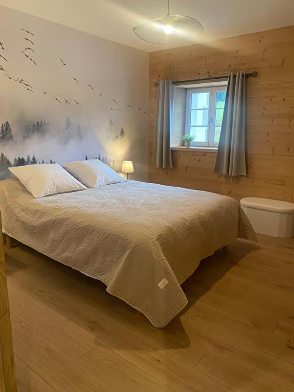 Welkom in onze gîte "La Belle Vue". Het is gelegen op de begane grond van ons huis, met directe toegang tot een terras en een niet omheinde tuin. Het heeft een woonkamer van 30m² met een ingerichte keuken en TV salon, een badkamer met inloopdouche en een aparte WC. Twee slaapkamers, één met een queensize bed en de andere met twee bedden van 90x190, op de bovenverdieping. Niet-roken accommodatie.