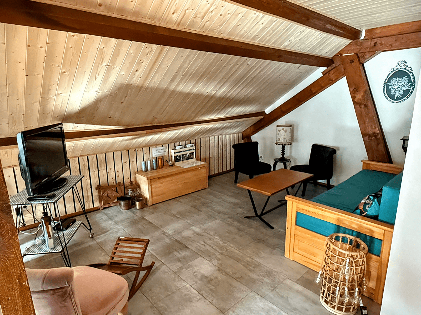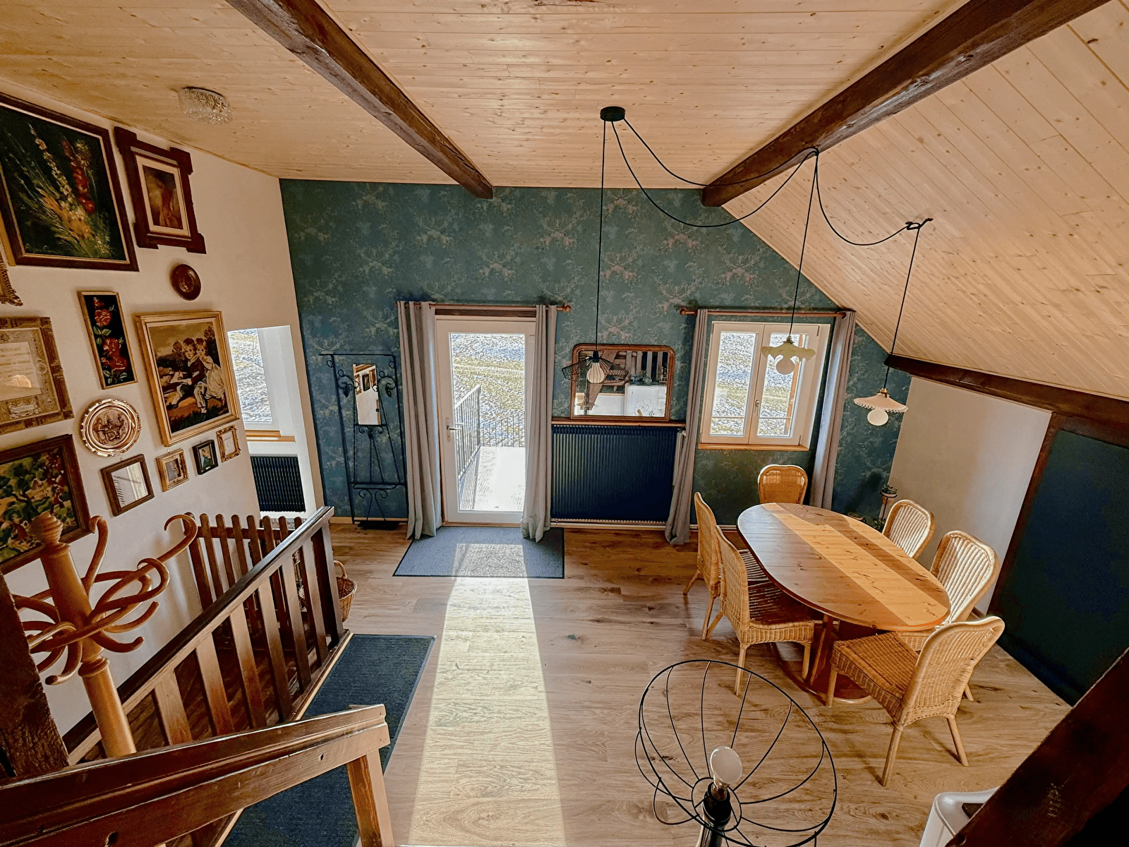 De gîte "Là-haut" is ingericht in een vintage stijl, met liefdevolle meubels en voorwerpen. Ontdek ons gezellige interieur met twee comfortabele slaapkamers ingericht met smaak en authenticiteit met knusse bedden en zachte dekbedden voor een welverdiende rust. Geniet van onze gezellige woonkamer voor levendige tarotspelletjes en een ruime eetkamer voor heerlijke maaltijden met familie of vrienden geserveerd op vintage servies, maar bereid in de volledig uitgeruste keuken met moderne apparatuur. Met zijn prachtige uitzichten is het een ideale locatie voor natuurliefhebbers en sportievelingen met skipistes voor alpineskiën en langlaufen en talloze wandel- en mountainbikeroutes in de directe omgeving.