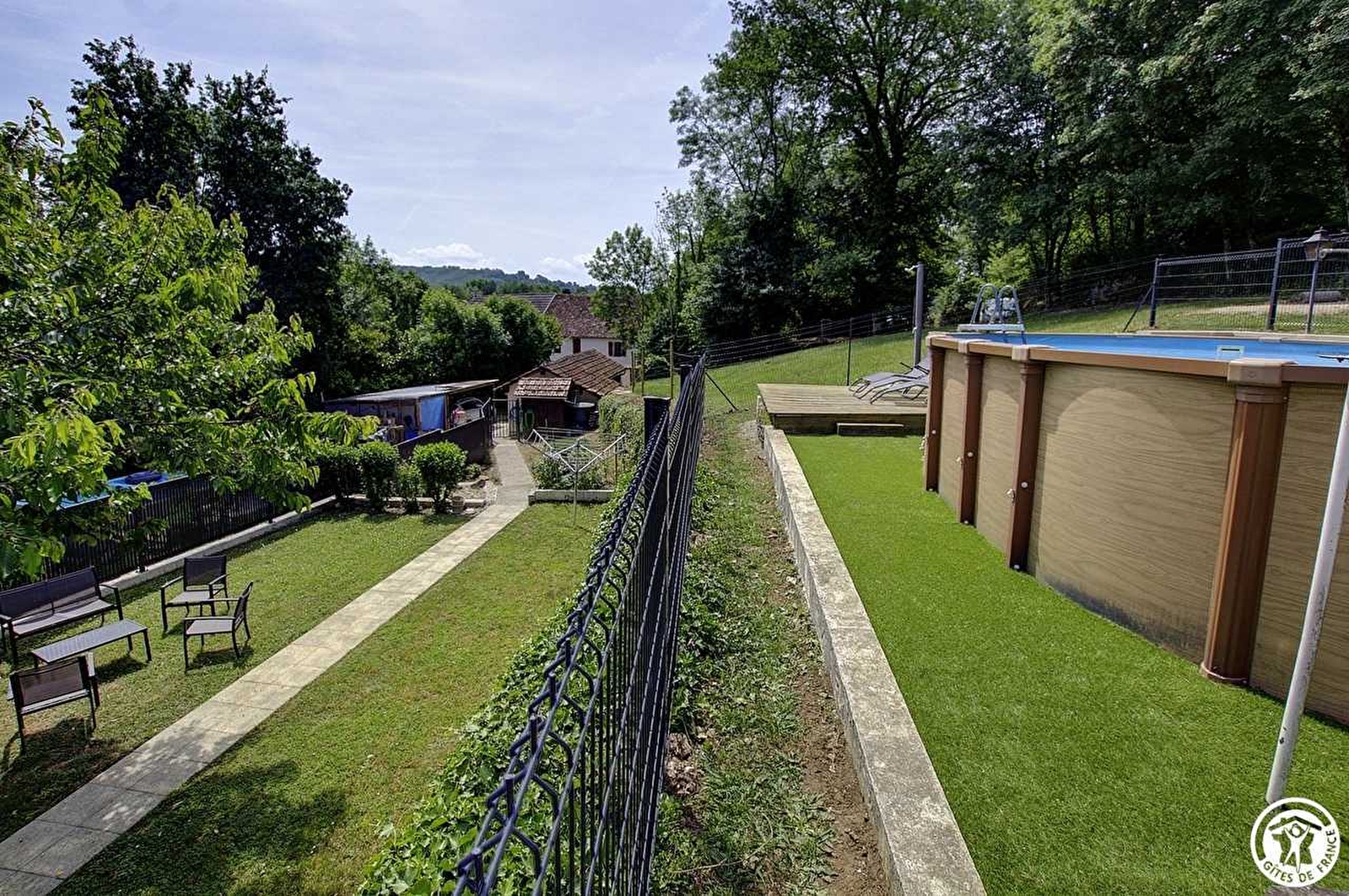 Vlakbij de oevers van de Rhône kan de Gîte du Machaon (77 m²) met zijn 2 slaapkamers en slaapgedeelte tot 6 gasten herbergen. De ongewone toegang tot de gîte is via een privéparkeerplaats met garage en carport. Naast de werkplaats van de eigenaren leidt deze gedeelde doorgang met de buren naar een privépoort bij de gîte, zodat je het landgoed kunt verkennen. Als je door de tuin loopt, vind je links het bovengrondse zwembad (5,2 m x 3,95 m en 1,32 m hoog), alleen toegankelijk in de zomer, en het bijbehorende terras (beveiligd gedeelte), evenals een petanqueterrein; en rechts een ontspanningsruimte waar je kunt genieten van de schaduw van de kersenboom. Je komt de gîte binnen via het hoofdterras, dat uitkomt op een volledig uitgeruste keuken (met pelletkachel) die uitkomt op de woonkamer. Daarna volgt een ontspanningsruimte die ook naar buiten opent, een slaapkamer met een tweepersoonsbed (140x190cm) en een doucheruimte met geïntegreerd toilet. Een smalle trap leidt naar de mezzanine met een tweepersoonsbed (140x190) en een studieruimte. Een tweede slaapkamer met twee eenpersoonsbedden en een aparte WC met wastafel. Elektrische verwarming en houtverwarming. Bijzonder aan deze gîte is het privézwembad en de jeu de boules baan. Huisdieren zijn welkom (met een borg van €150), bedden zijn opgemaakt bij aankomst en nutsvoorzieningen zijn inbegrepen. Gelegen langs de Viarhôna greenway, kunt u genieten van de regio en het Rhône omleidingskanaal ontdekken. Waterskiën op 2 km, kanoën en kajakken op 2,5 km en het park WALIBI Rhône-Alpes op 6 km. Nieuw: GREEN-UP plug voor het opladen van elektrische voertuigen beschikbaar voor gasten (€7,5 per dag of €50 per week). Het vullen van het zwembad en het gebruik ervan door de gasten kan worden beperkt in toepassing van de "droogte" decreten uitgevaardigd door de prefectuur van Ain.