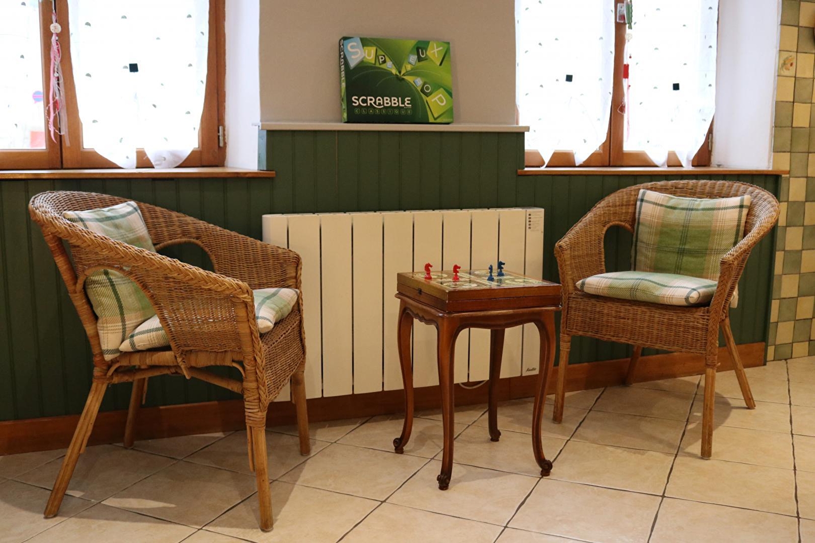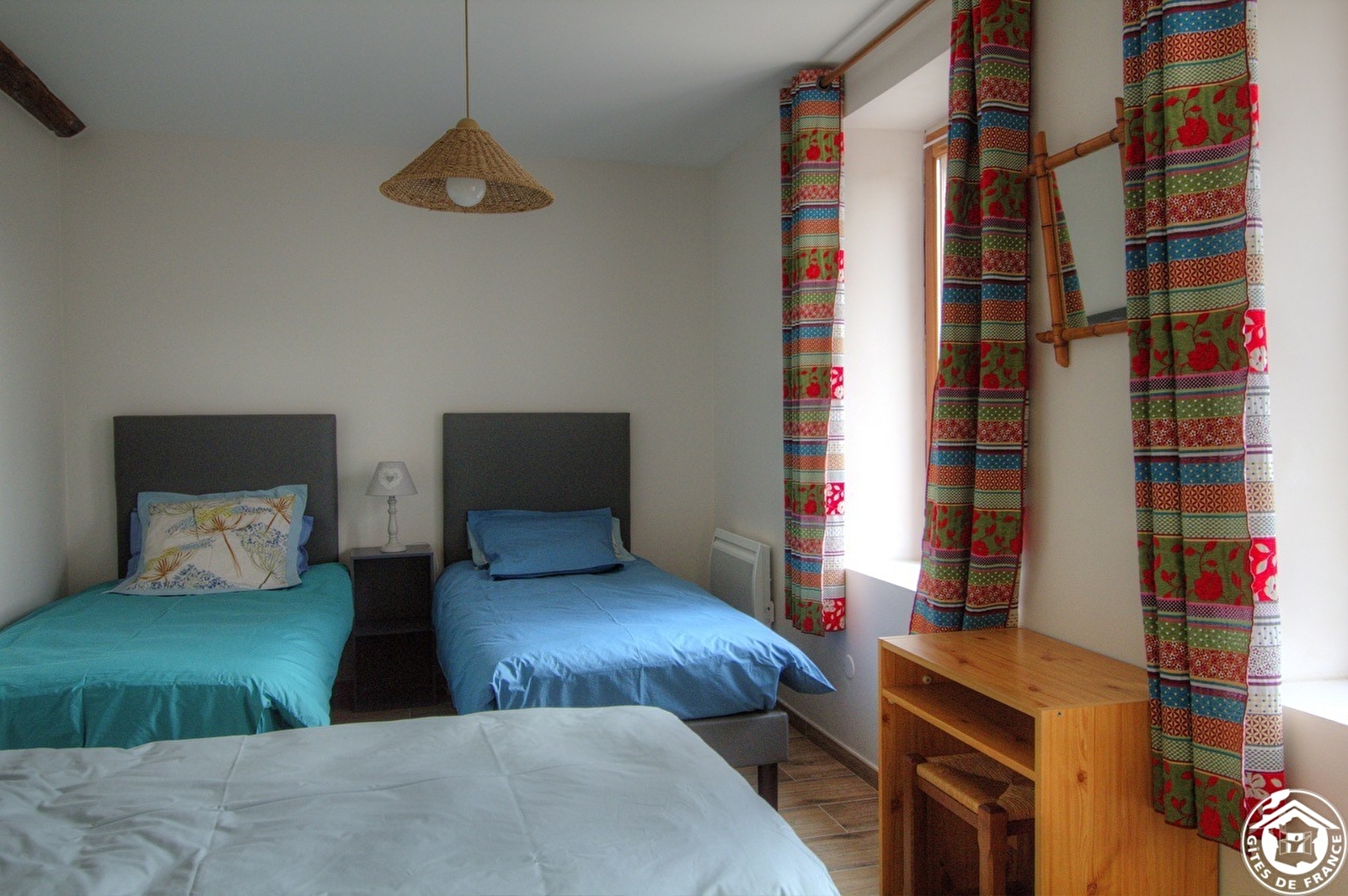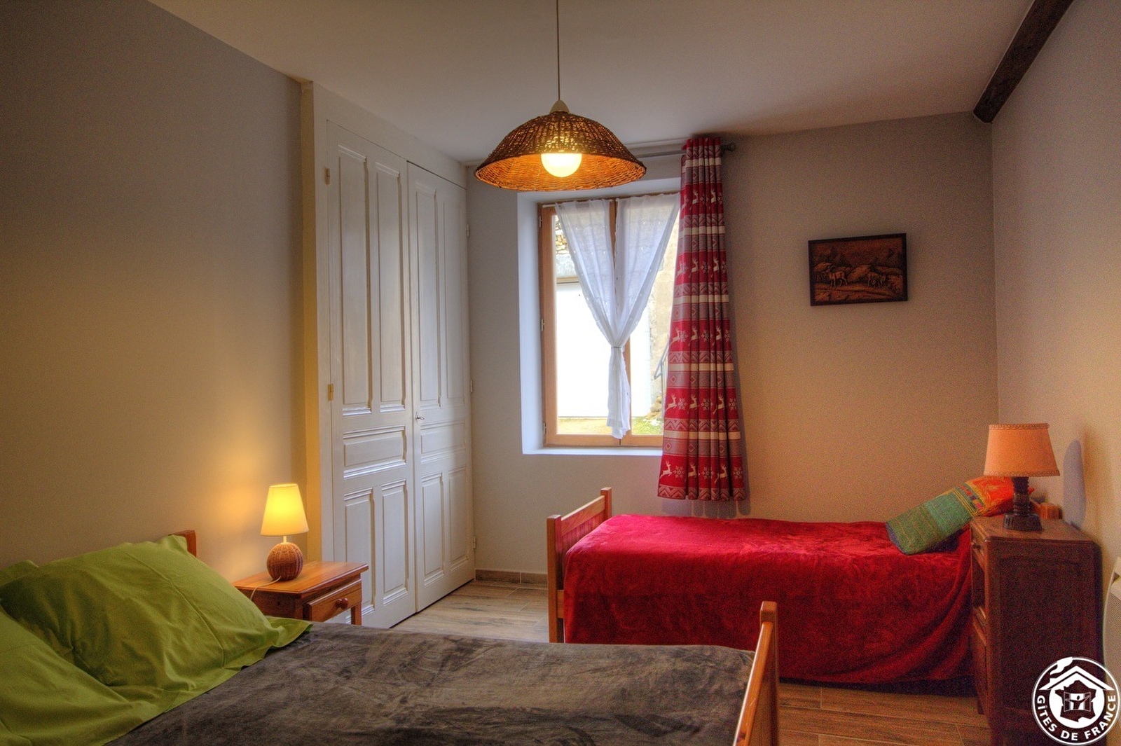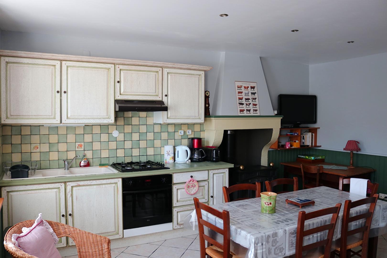 Onafhankelijke ingang, woonkamer met keuken, 2 slaapkamers (1 bed van 140, 4 bedden van 90 of 2x90 = bed van 180, kinderbedje voor kinderen tot 3 jaar). Doucheruimte. Verwarming door warmtepomp, houtkachel en elektrische convector. Carport. Niet aangrenzend stuk grond tegenover de gîte, compleet tuinmeubilair, barbecue, portiek, waslijn. Renovatiedatum 2007. Schoonmaakpakket mogelijk (50€) Alleen kleine honden toegestaan.