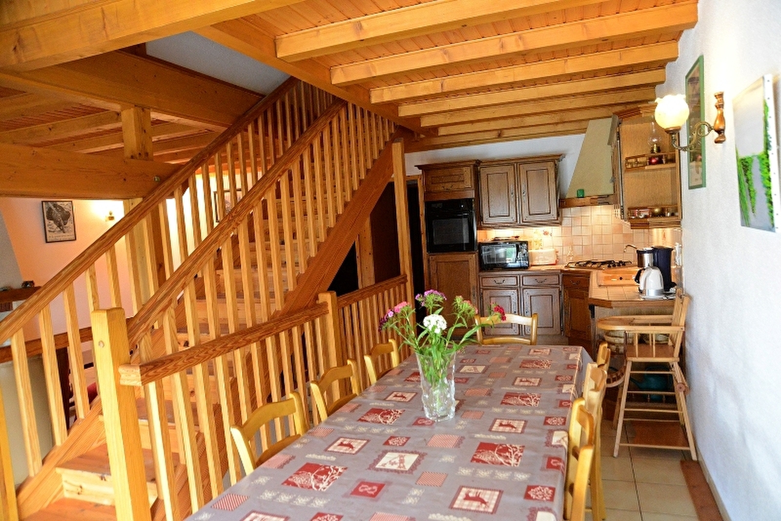 Halfvrijstaand huis met aparte ingang. Op de 1e verdieping: keuken, woonkamer, slaapkamer 1: 1 tweepersoonsbed, aparte WC, badkamer. 2e verdieping: slaapkamer 2: 1 tweepersoonsbed, slaapkamer 3: 2 eenpersoonsbedden. Extra aparte WC op de begane grond. Klein terras, omheinde binnenplaats, tuinmeubelen, barbecue. Elektrische verwarming. Kosten niet inbegrepen: Elektriciteit: van 0,19 cts/kwh (nacht) tot 0,25 cts/kwh (dag). Hout gratis ter beschikking gesteld. Faciliteiten gedeeld met de eigenaar: garage, diepvriezer en wasdroger. Kinderbed, wafelijzer, raclettestel en fonduestel beschikbaar.