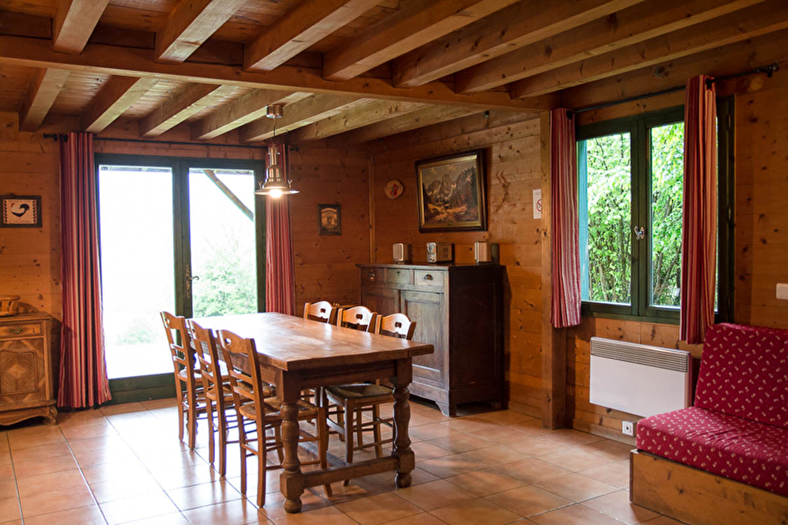 Vrijstaand chalet vlakbij de Cascades du Hérisson. Begane grond: woonkamer, keuken, slaapkamer 1: 1 tweepersoonsbed, badkamer met douche. Eerste verdieping: mezzanine met zithoek, slaapkamer 2: 1 tweepersoonsbed en 2 eenpersoonsbedden. Overdekt terras met tuinmeubelen, barbecue, aangebouwde garage. Omheind terrein. Petanquebaan. Gratis wifi-internet. Baby uitrusting. Elektrische verwarming en houtverwarming, kosten niet inbegrepen. Houtpakket: €25/week van 15/10 tot 15/04. 1 huisdier toegestaan, extra huisdieren op aanvraag bij de eigenaar (€35 toeslag per extra huisdier).