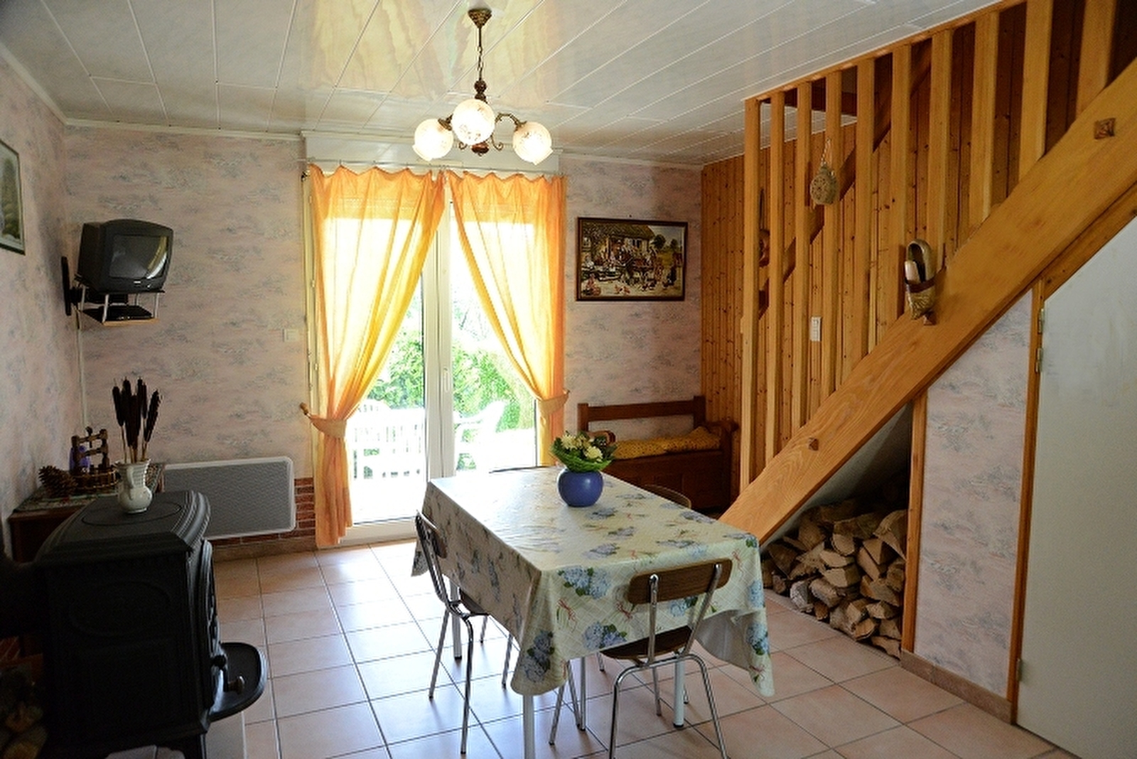 Accommodatie in een recent gebouwd huis met andere appartementen. Begane grond: woonkamer, keuken met houtkachel, wc. Eerste verdieping: slaapkamer 1: 1 tweepersoonsbed, slaapkamer 2: 2 eenpersoonsbedden, badkamer met douche. Omheinde binnenplaats en tuin, tuinmeubilair, barbecue. Elektrische verwarming en houtkachel. Verplichte schoonmaakkosten voor huisdieren: 30€.