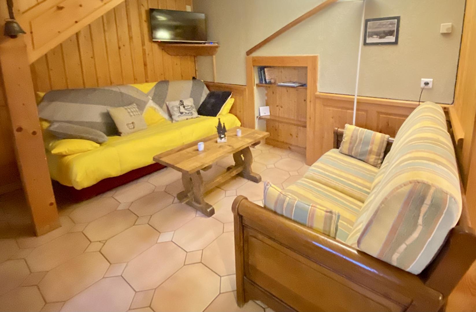 Accommodatie op de eerste verdieping. Woonkamer, kitchenette, zitkamer, slaapbank, slaapkamer 1: 3 eenpersoonsbedden, slaapkamer 2: 1 tweepersoonsbed, badkamer, doucheruimte, aangrenzende omheinde tuin, tuinmeubilair, barbecue, eigen parkeerplaats met sneeuwruimer. Elektrische verwarming. Alle kosten inbegrepen in de zomer.