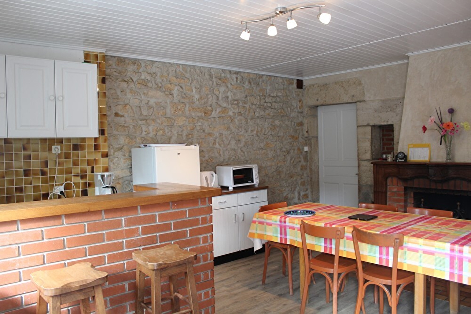 Begane grond in twee-onder-een-kap woning. Keuken, magnetron, woonkamer, TV, badkamer met douche, 2 toiletten, 1 slaapkamer op de begane grond (1 x 2 sl.k.), 2 slaapkamers op de eerste verdieping (1 x 2 sl.k. en 3 x 1 sl.k.), wasmachine, open haard, omheinde tuin, tuinmeubilair, garage, terras.