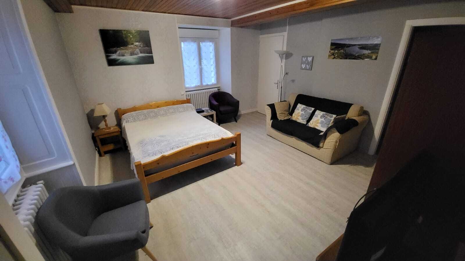 Accommodatie op de begane grond van het huis van de eigenaren met keuken, slaapkamer 1: 1 tweepersoonsbed, badkamer. Omheinde privétuin, tuinmeubelen, barbecue, schommel, jeu de boulesbaan. Centrale en elektrische verwarming. Alle nutsvoorzieningen inbegrepen in de zomer. Nozeroy is een middeleeuws stadje met winkels binnen 100 meter: apotheek, bakker, kruidenier, tabakswinkel, slager en gezondheidscentrum. Vlakbij meren, watervallen, grotten, vis- en tennisbanen. Parkeren op het terrein.