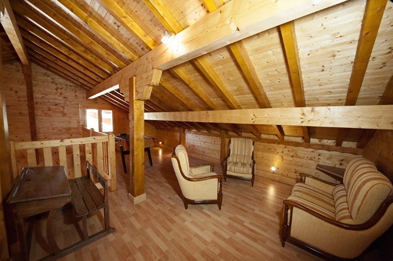 Chalet gelegen op slechts een paar kilometer van talrijke meren en watervallen, wandelpaden en andere toeristische attracties die u gezien moet hebben! Een grote, lichte woonkamer met open keuken die uitkomt op de zit- en eetkamer, berging met wasmachine en wasdroger, badkamer met bad, apart toilet, 3 slaapkamers (een met 2 eenpersoonsbedden en 2 andere met elk 1 tweepersoonsbed, waarvan een met douche en wastafel). Boven: een mezzanine met tafelvoetbal, 2 slaapkamers met elk 1 tweepersoonsbed en 1 eenpersoonsbed, badkamer met douche, apart toilet. Er is een groot terras met tuinmeubilair en barbecue. Overdekte schuur voor 4 auto's. Verwarming: één zak pellets per dag. Voor extra zakken wordt €9,00 in rekening gebracht.